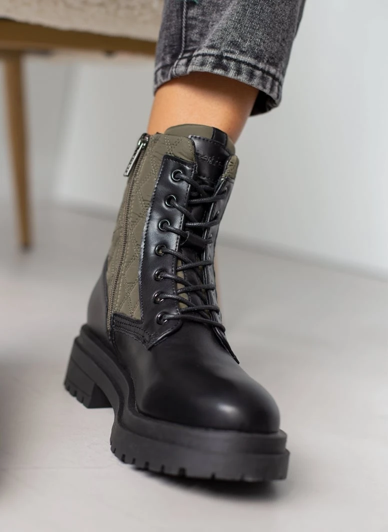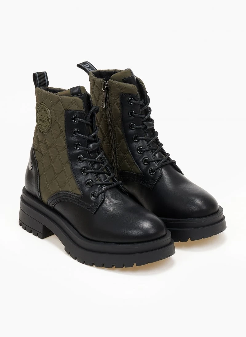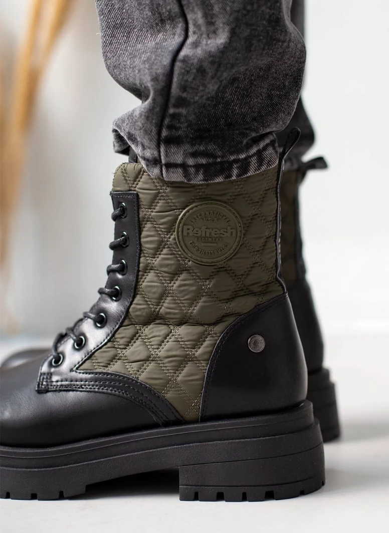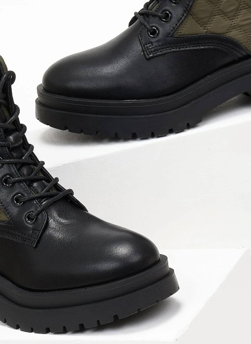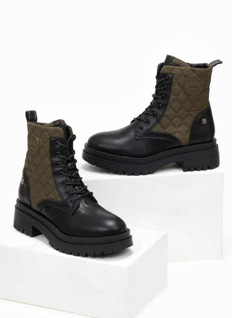 Αρβυλάκια με ύφασμα και καπιτονέ σχέδιο Refresh. Έχουν κορδόνια στη μπροστινή πλευρά. Ψηλή τρακτερωτή σόλα. Μεταλλικό στοιχείο στο πίσω μέρος. Peta-Vegan approved.