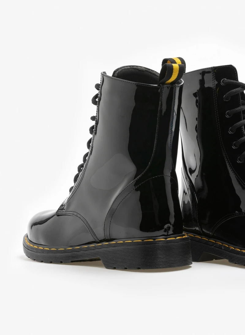 Λουστρίνι αρβυλάκια με εξωτερική ραφή στη σόλα. Ο πάτος είναι δερμάτινος. Ελληνικής κατασκευής.