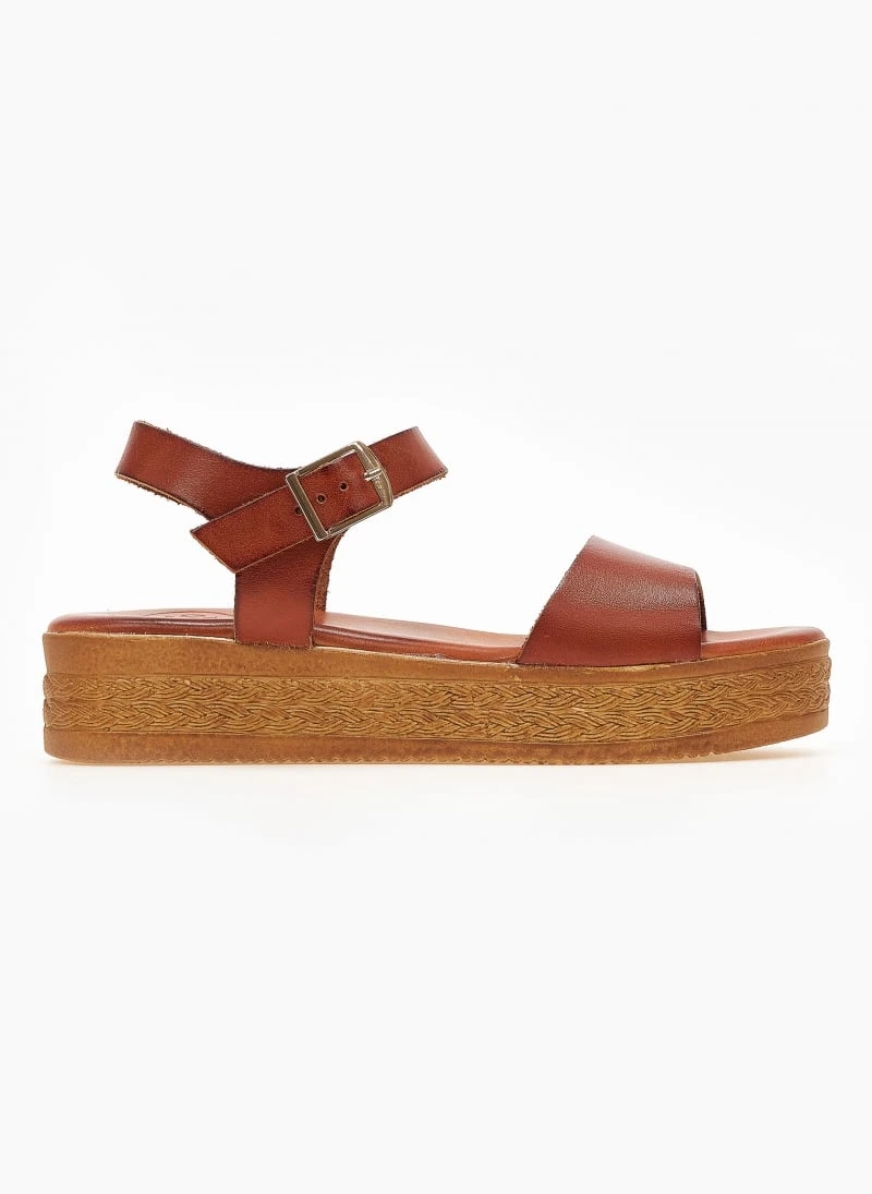 Flatform πέδιλα TFP με δέσιμο στο πλάι. Δερμάτινος πάτος με ενίσχυση. Ελληνικής κατασκευής.