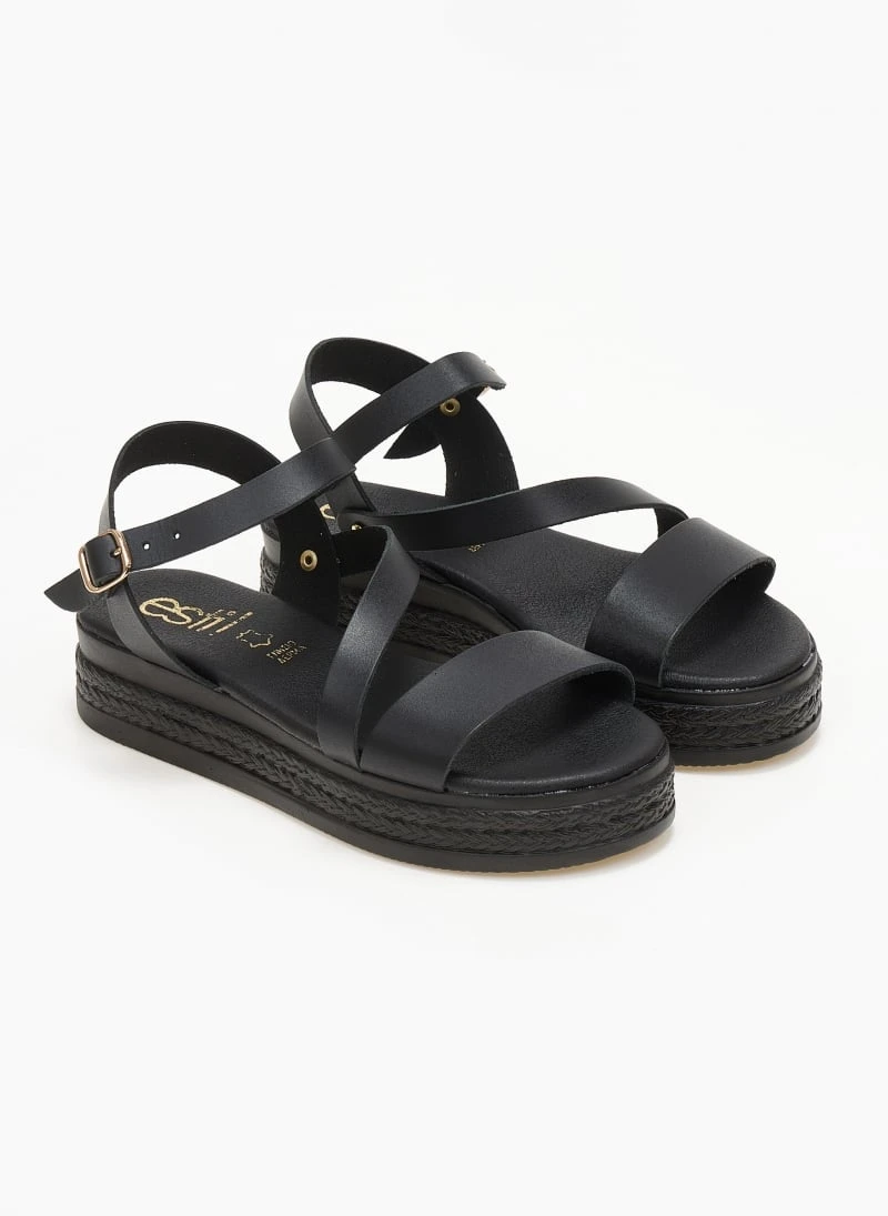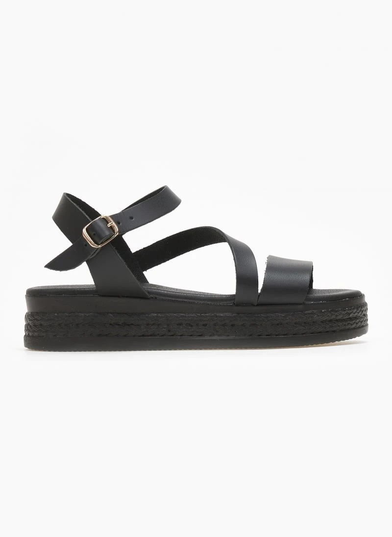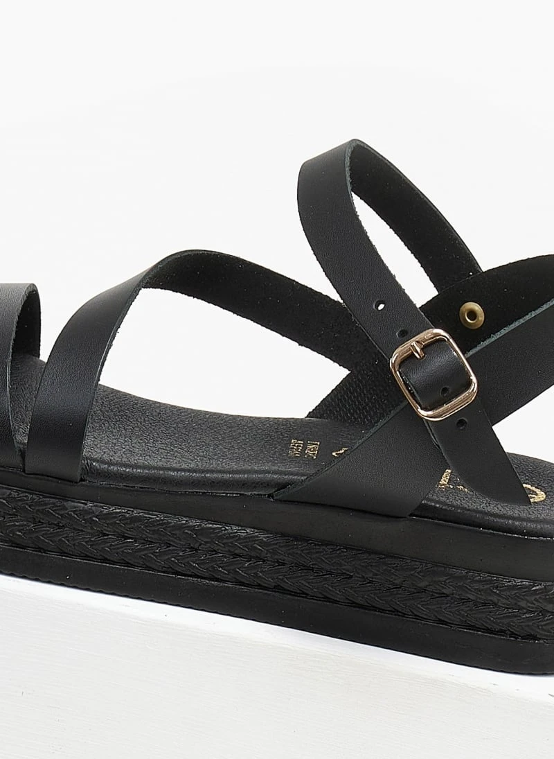 Flatforms δερμάτινα estil. Σχέδιο με λοξό λουράκι στο κουτεπιέ. Δένουν με μπαρέτα στο ύψος του αστραγάλου.