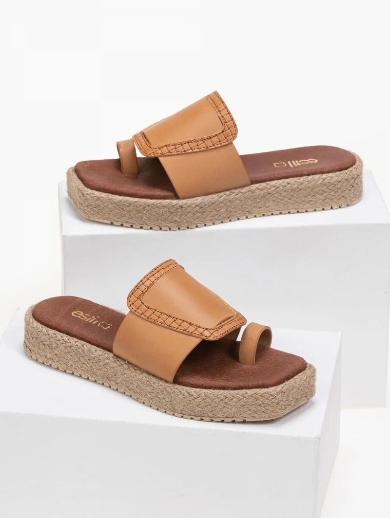 Estil δερμάτινα flatforms σε καρέ γραμμή.Έχουν φαρδιά φάσα με λεπτομέρεια διχρωμία και pattern.Ο πάτος είναι δερμάτινος με ενίσχυση.Η σόλα είναι ντυμένη με σχοινί.Ελληνικής κατασκευής.