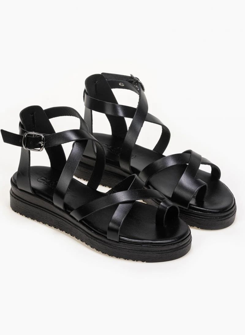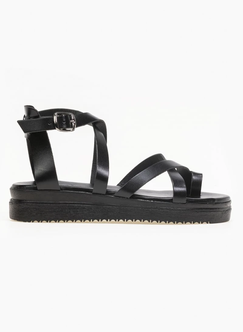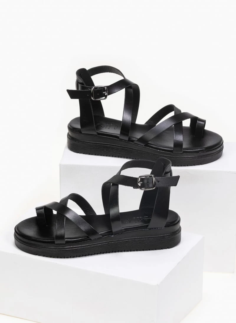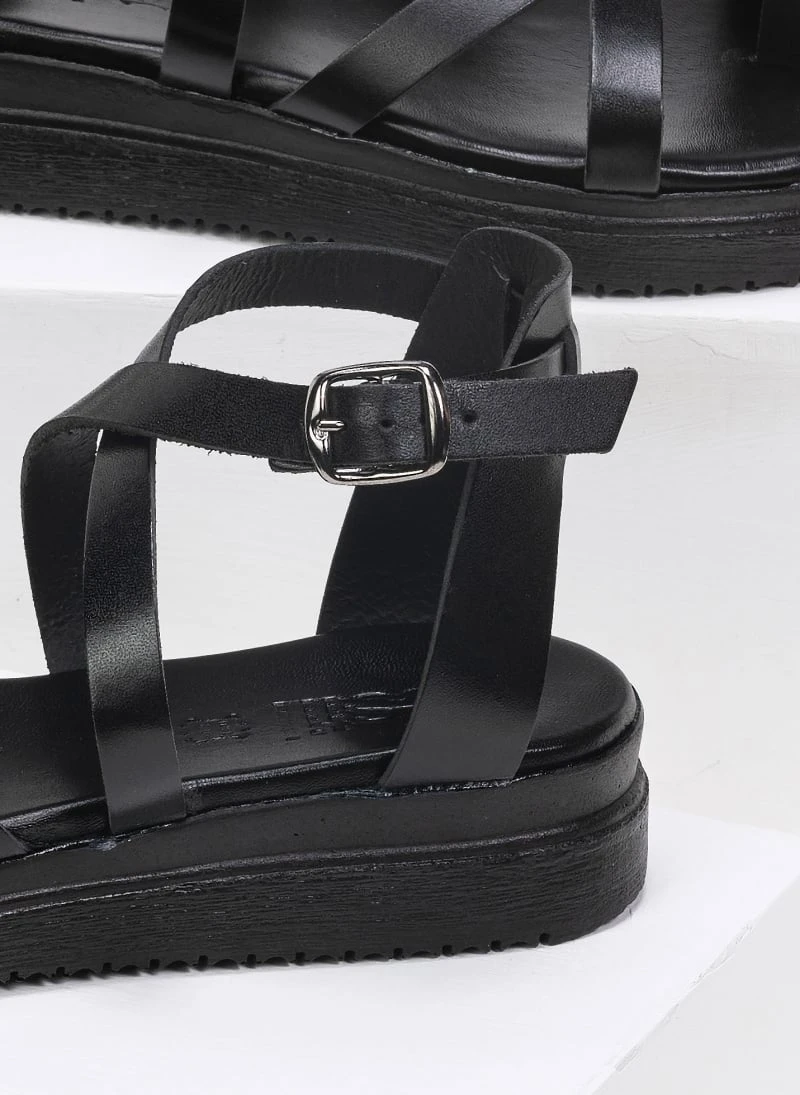 Flatforms δερμάτινα με χιαστί δέσιμο Tfp – Μαύρο