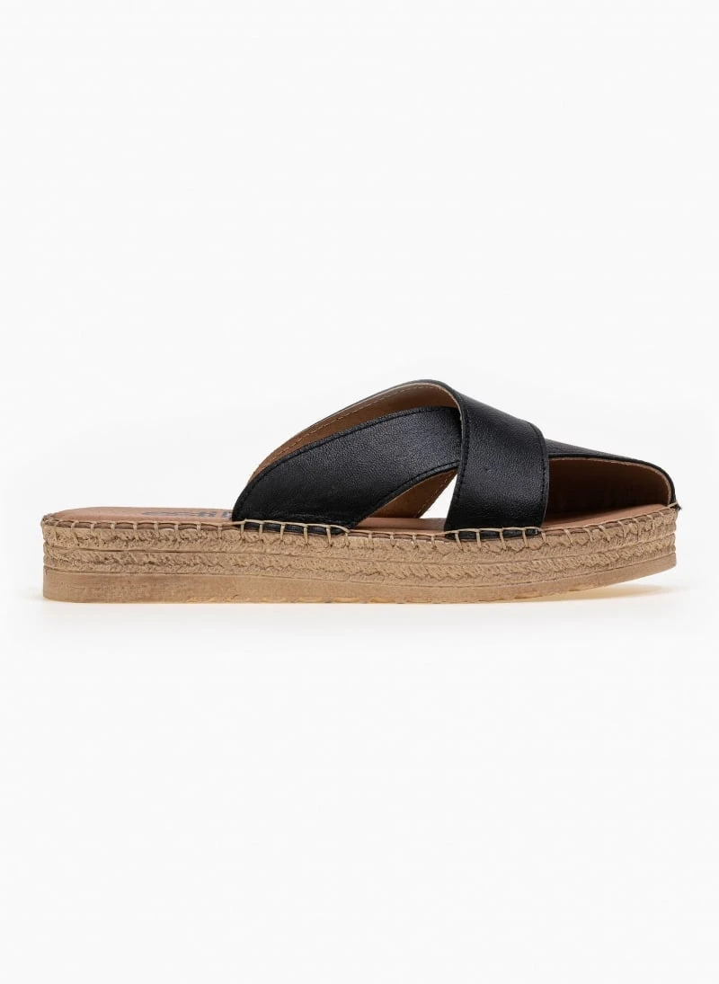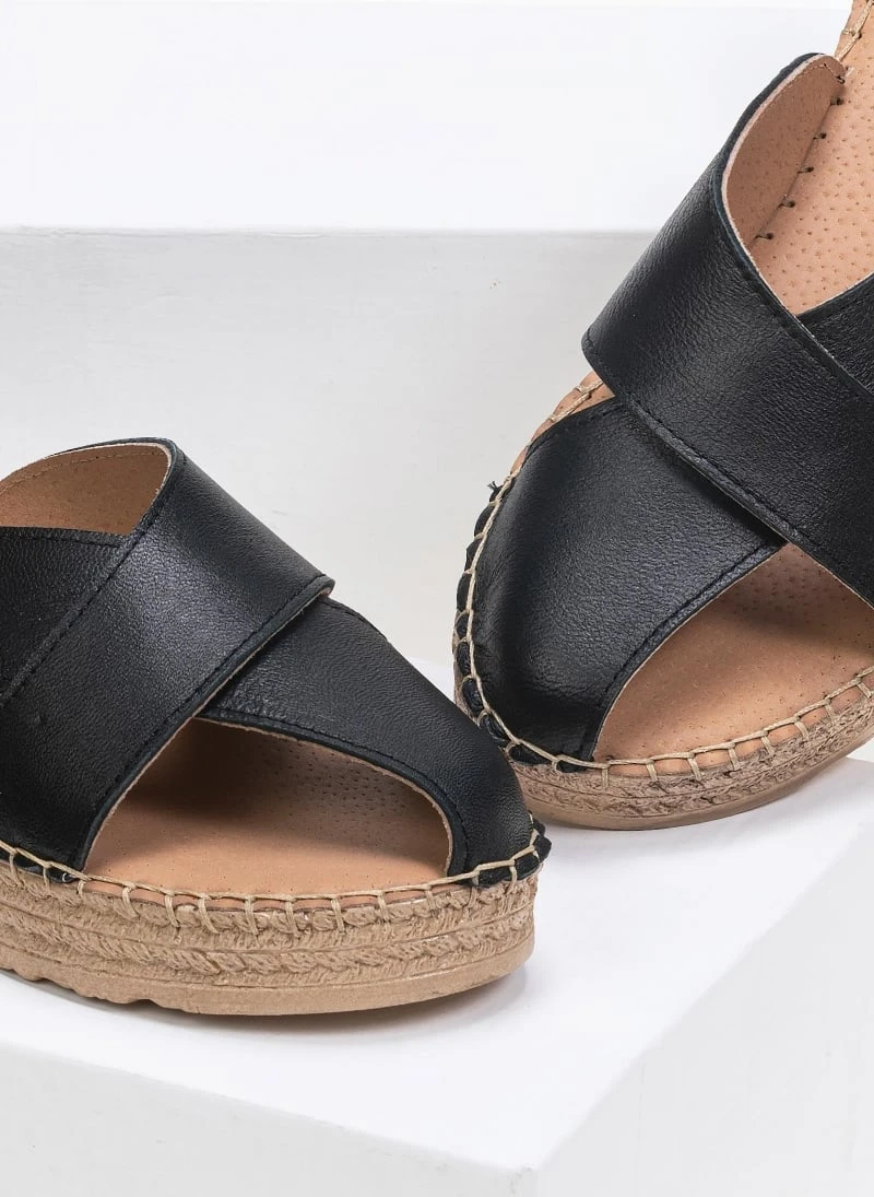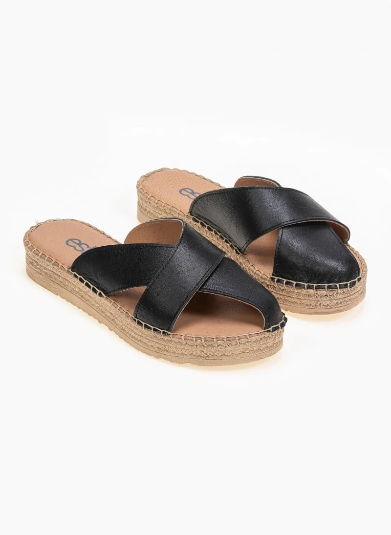 Flatforms δερμάτινα με ιδιαίτερο άνοιγμα Estil – Μαύρο