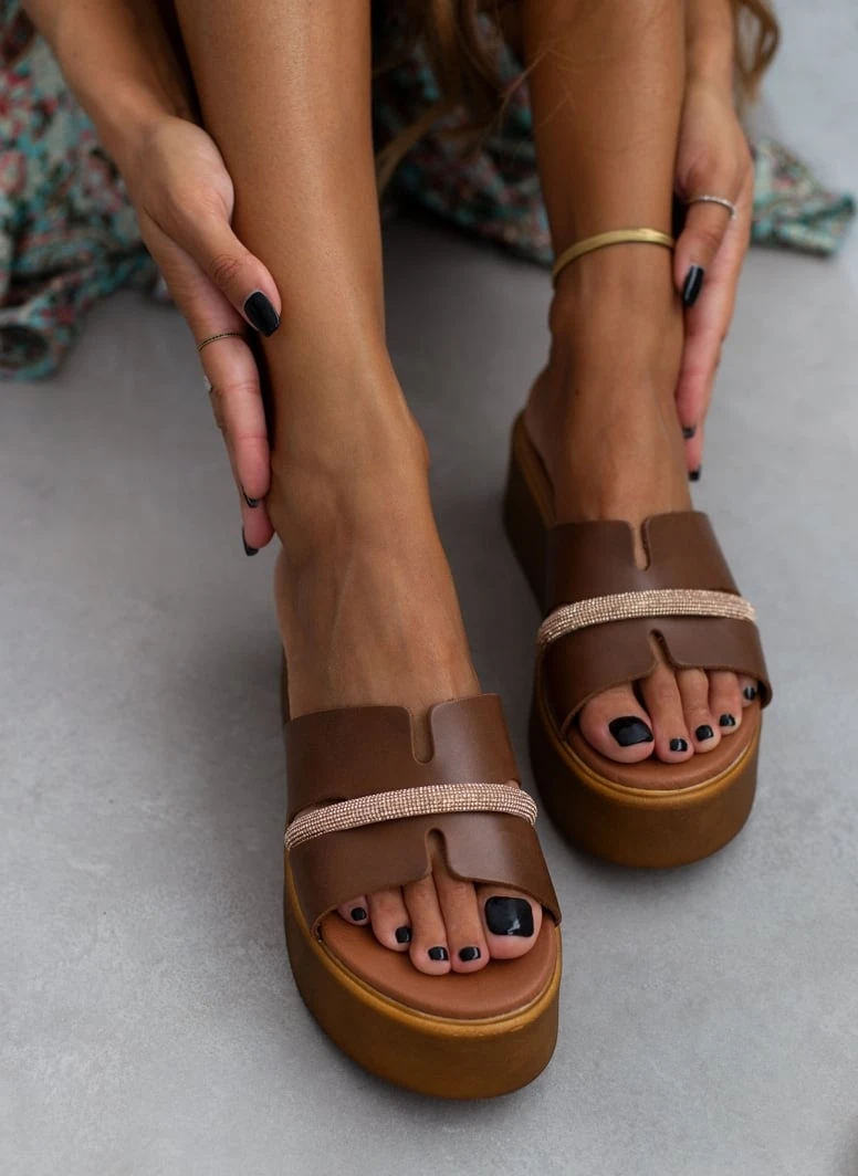Flatforms δερμάτινα με στρας Estil – Ταμπά