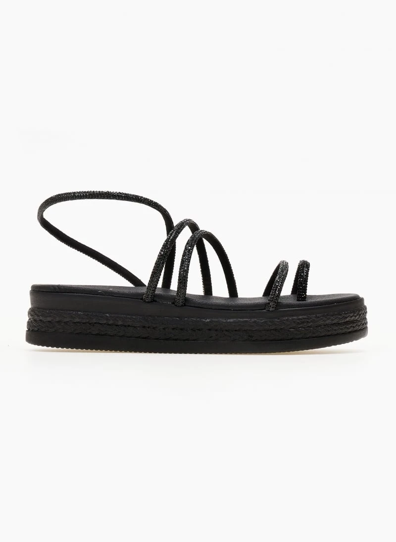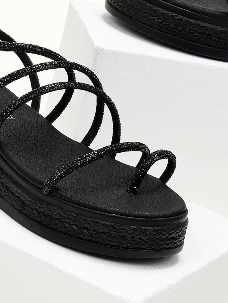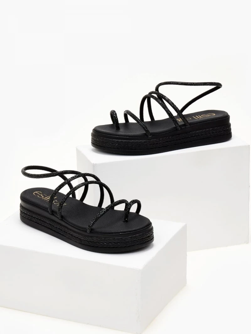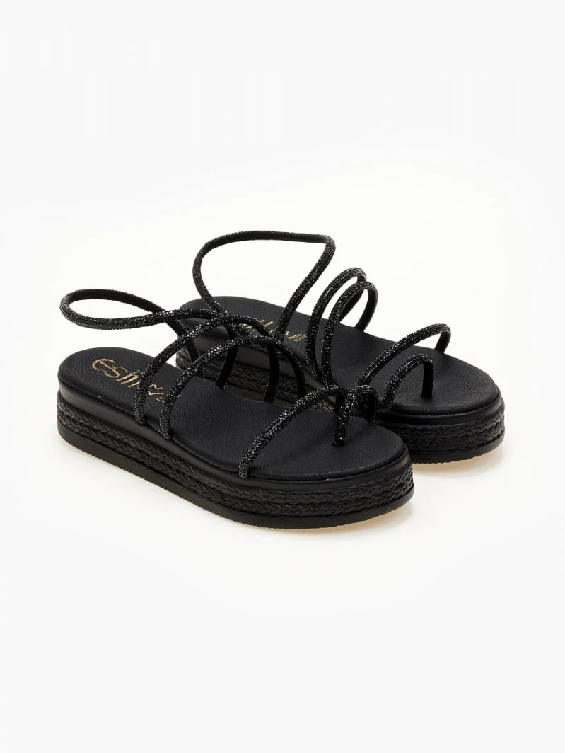 Flatforms δερμάτινα με στρας λουράκια Estil – Μαύρο