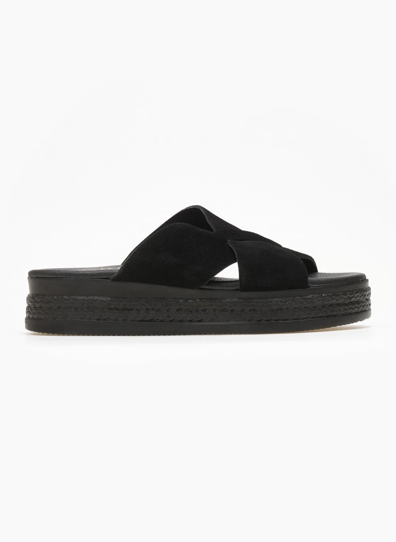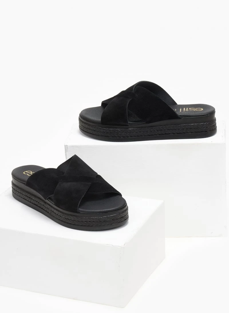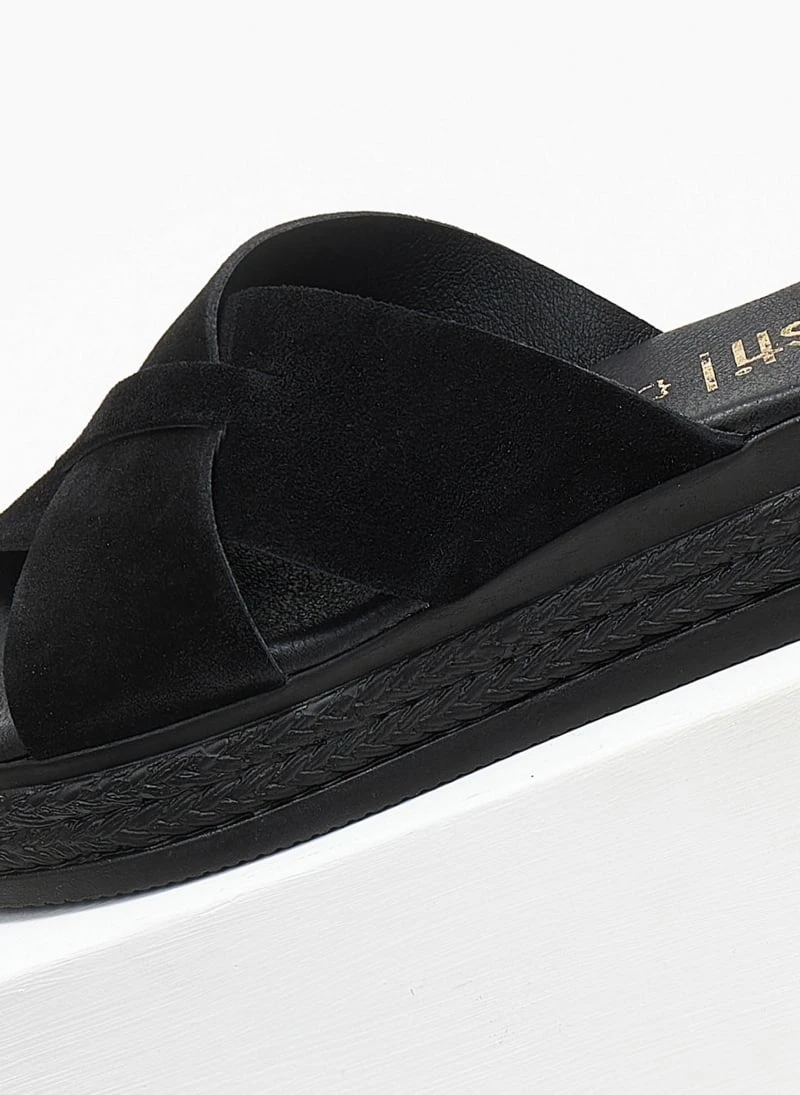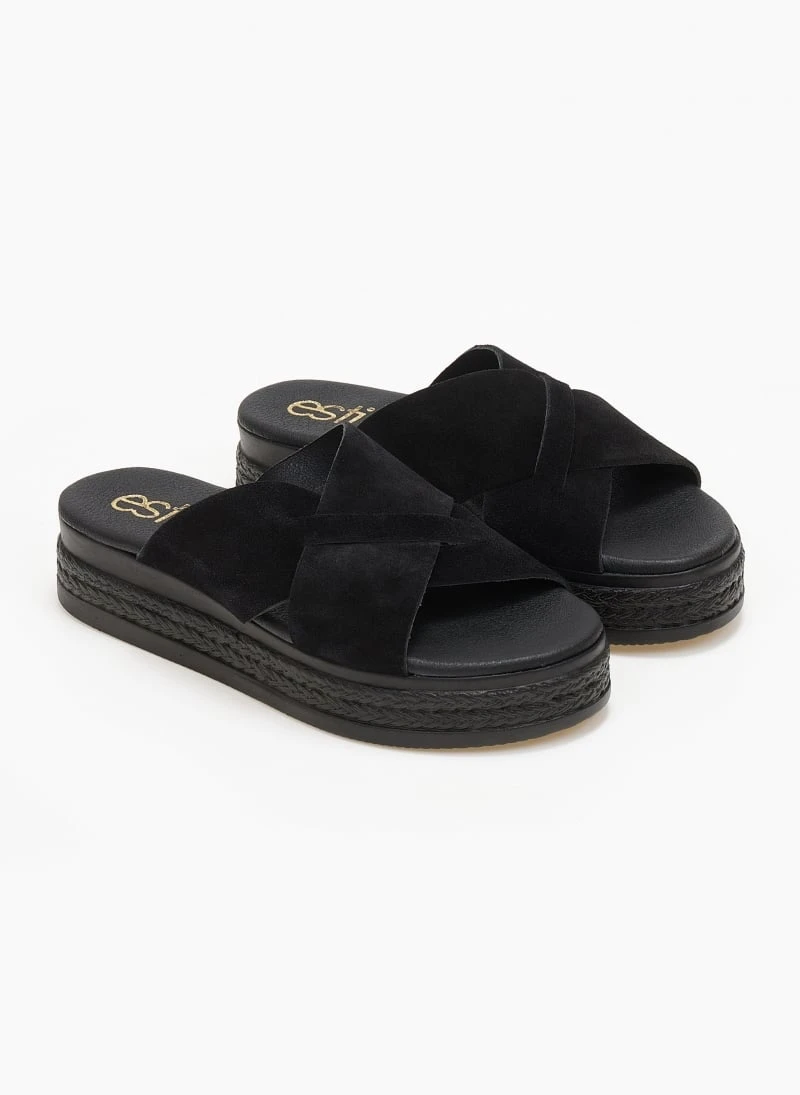 Flatforms estil. Έχουν περαστές χιαστί φάσες από καστόρι δέρμα. Δερμάτινος πάτος με ενίσχυση. Ελληνικής κατασκευής.