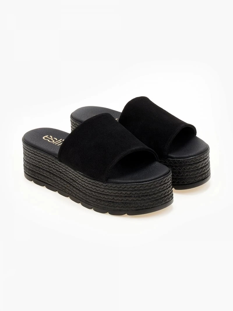Flatforms καστόρινα με φάσα Estil – Μαύρο