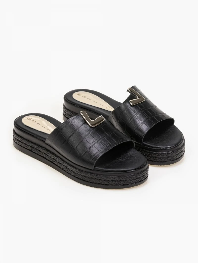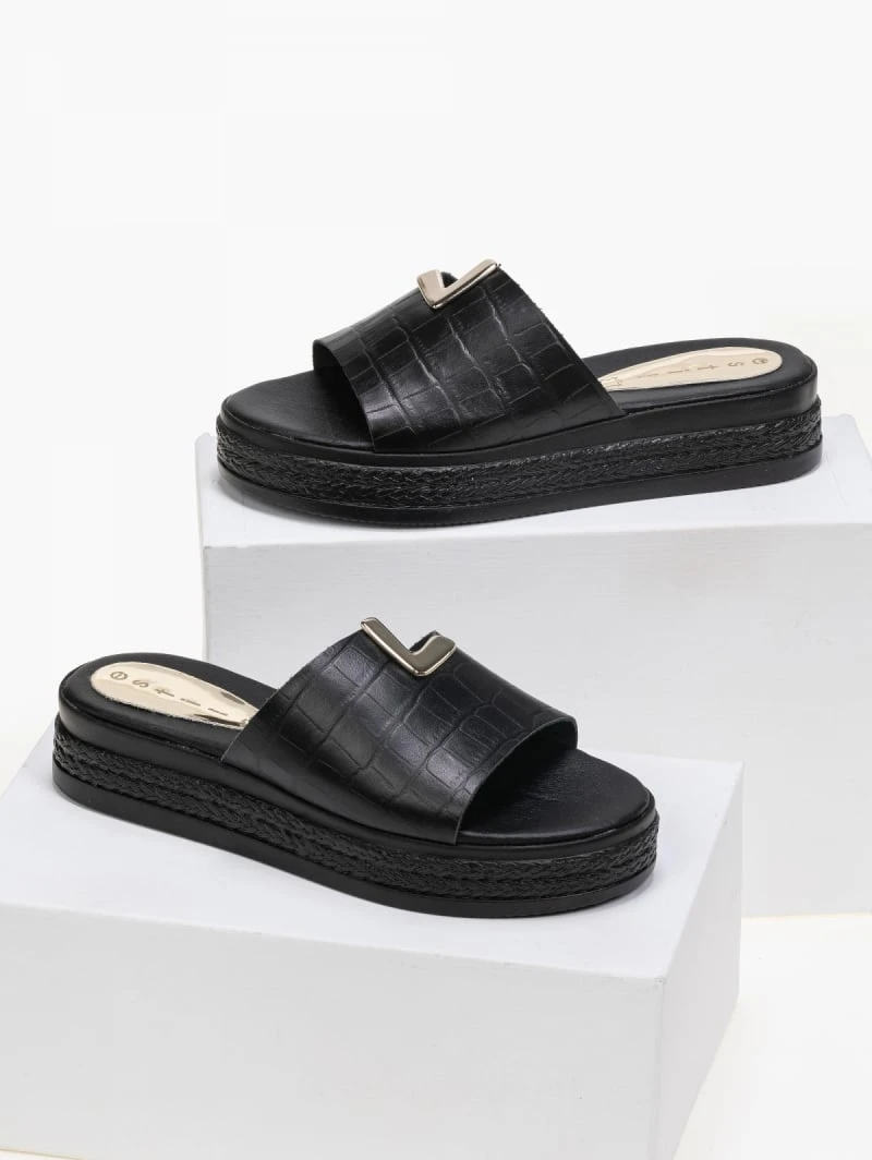 Flatforms κροκό με άνισο τελείωμα Estil – Μαύρο
