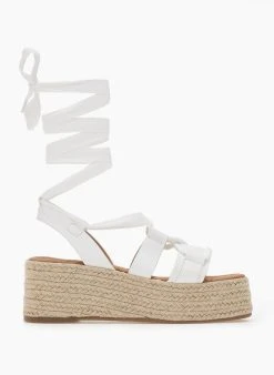 The Fashion Project Flatforms Lace Up με σχοίνινη σόλα – Λευκό