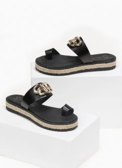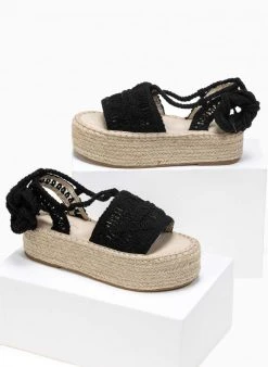 The Fashion Project Flatforms με πλεκτό σχοίνινο σχέδιο – Μαύρο