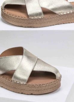 Flatforms δερμάτινα με ιδιαίτερο άνοιγμα Estil – Χρυσό