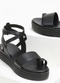 Flatforms δερμάτινα με χιαστί δέσιμο Tfp – Μαύρο
