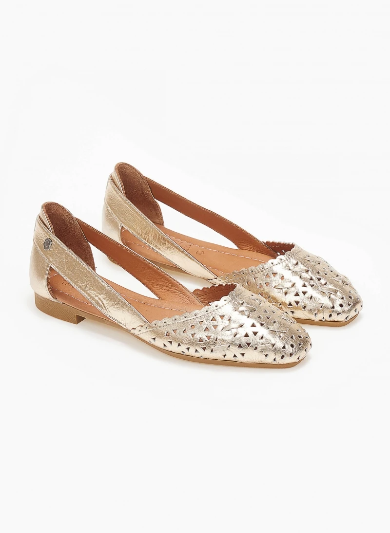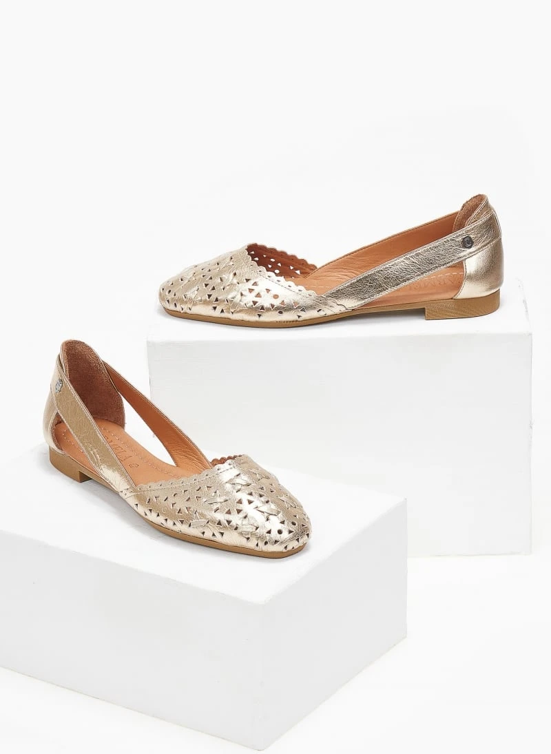 Μπαλαρίνες δερμάτινες με διάτρητο σχέδιο Carmela 160672 – Χρυσό