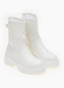 The Fashion Project Μποτάκια Biker με τρακτερωτή σόλα – Λευκό