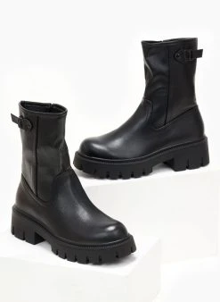 The Fashion Project Μποτάκια Biker με ψηλή τρακτερωτή σόλα – Μαύρο