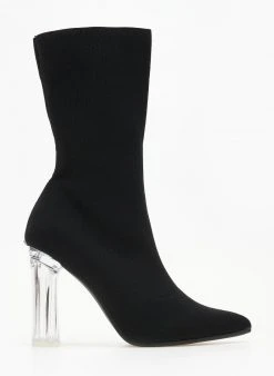 The Fashion Project Μποτάκια κάλτσα με διάφανο τακούνι – Μαύρο