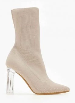The Fashion Project Μποτάκια κάλτσα με διάφανο τακούνι – Μπεζ