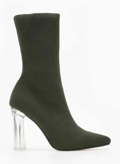 The Fashion Project Μποτάκια κάλτσα με διάφανο τακούνι – Χακί