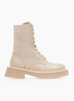The Fashion Project Μποτάκια κάλτσα με εφαρμοστή γάμπα – Μπεζ