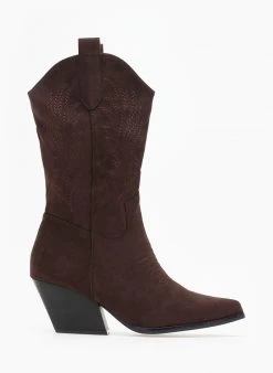 TFP Μποτάκια Cowboy Suede με σχέδιο – Καφέ