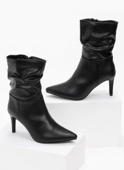 The Fashion Project Μποτάκια μυτερά με σούρες – Μαύρο