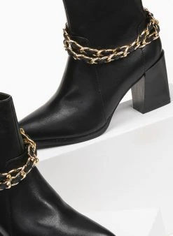 The Fashion Project Μποτάκια με αλυσίδες στα λουράκια – Μαύρο