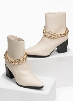 The Fashion Project Μποτάκια με αλυσίδες στα λουράκια – Μπεζ