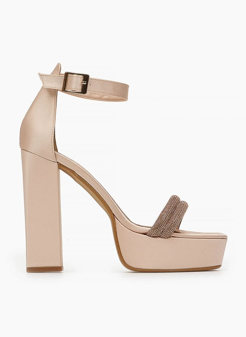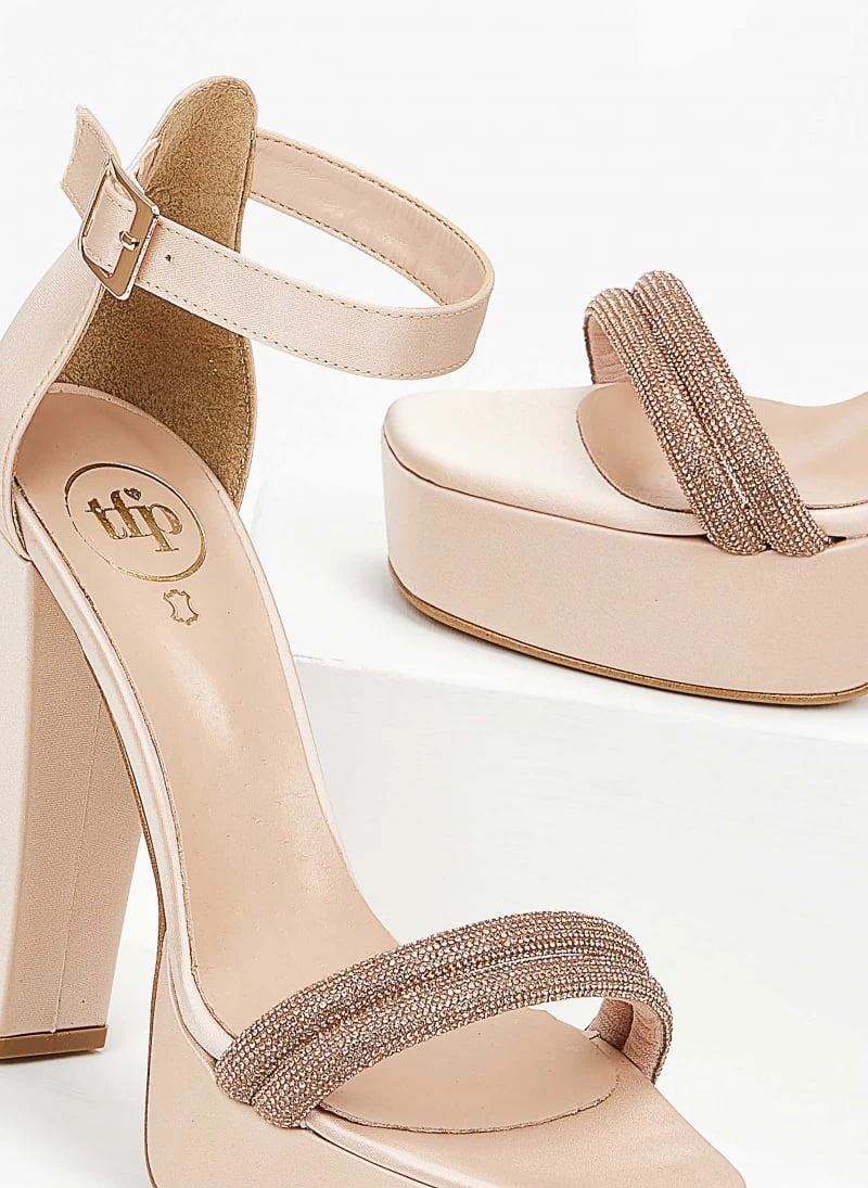 Πέδιλα με φιάπα και στρας υφασμάτινα Tfp – Nude