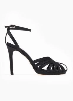 Πέδιλα σατέν tfp με ρετρό σχέδιο. Δένουν με μπαρέτα στο ύψος του αστραγάλου. Έχουν λεπτή φιάπα. Ελληνικής κατασκευής