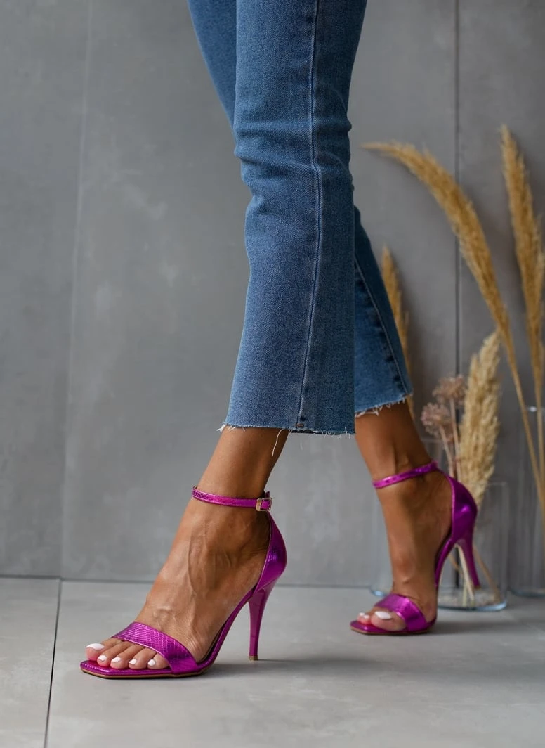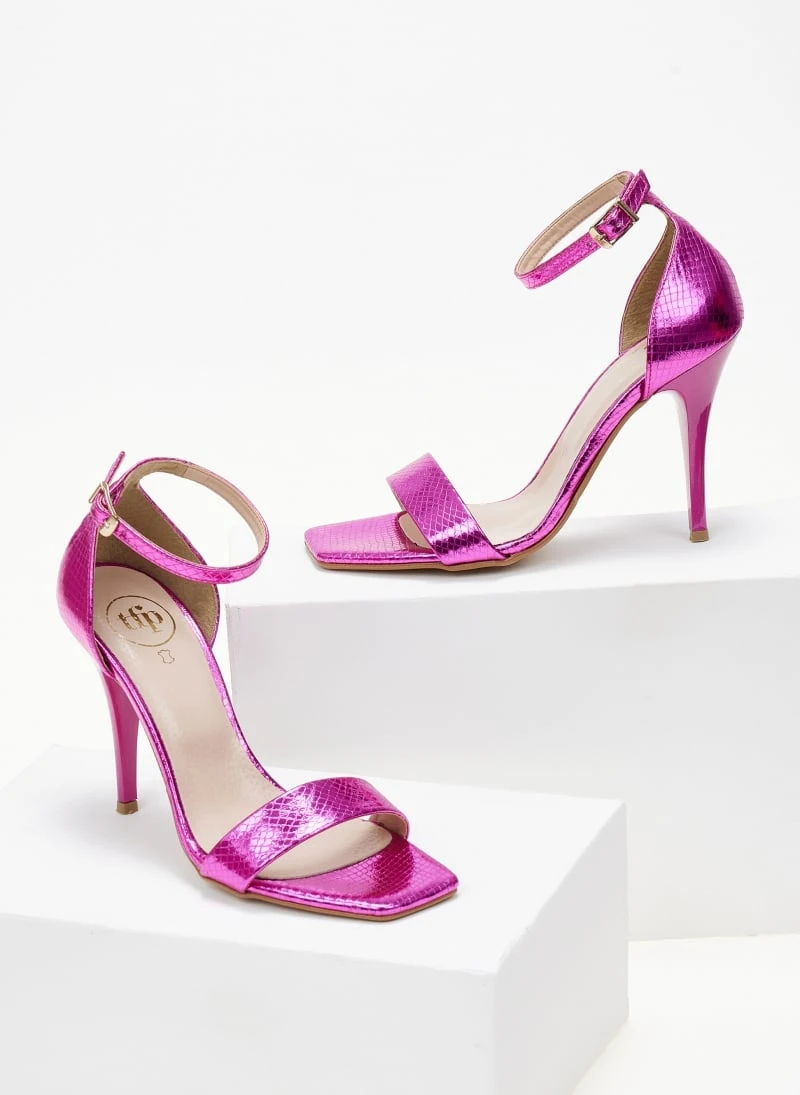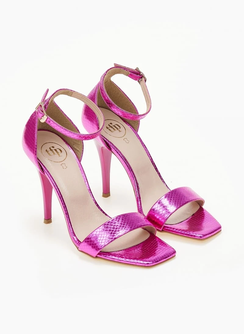 Πέδιλα TFP με pattern φίδι. Έχουν κλειστή φτέρνα. Δένουν με μπαρέτα στο ύψος του αστραγάλου. Δερμάτινος πάτος. Ελληνικής κατασκευής.