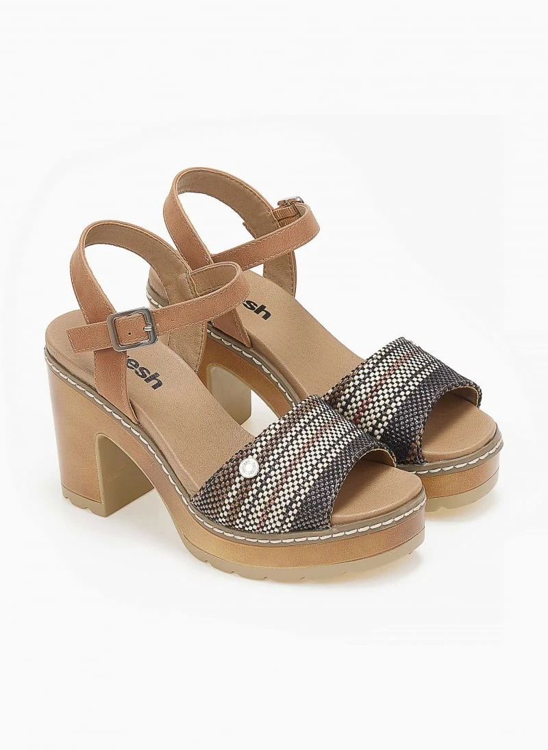 Πέδιλα Refresh με μπαρέτα. Έχουν φαρδιά φάσα σε συνδυασμούς χρωμάτων με πλεκτό σχέδιο. Ελαφριά σόλα με εξωτερική ραφή. Peta vegan approved.