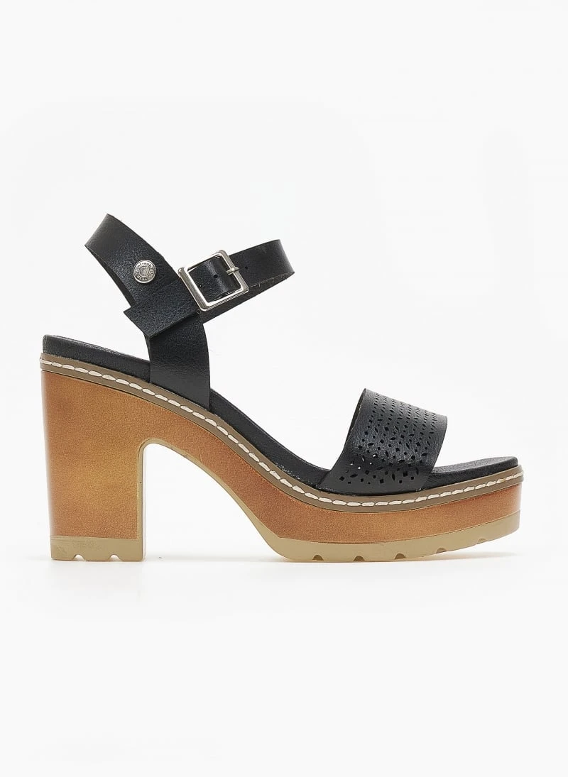 Πέδιλα Refresh με διάτρητο σχέδιο στη φάσα. Δένουν με μπαρέτα στο ύψος του αστραγάλου. Ελαφριά σόλα με εξωτερική ραφή. Χοντρό τακούνι. Peta vegan approved.