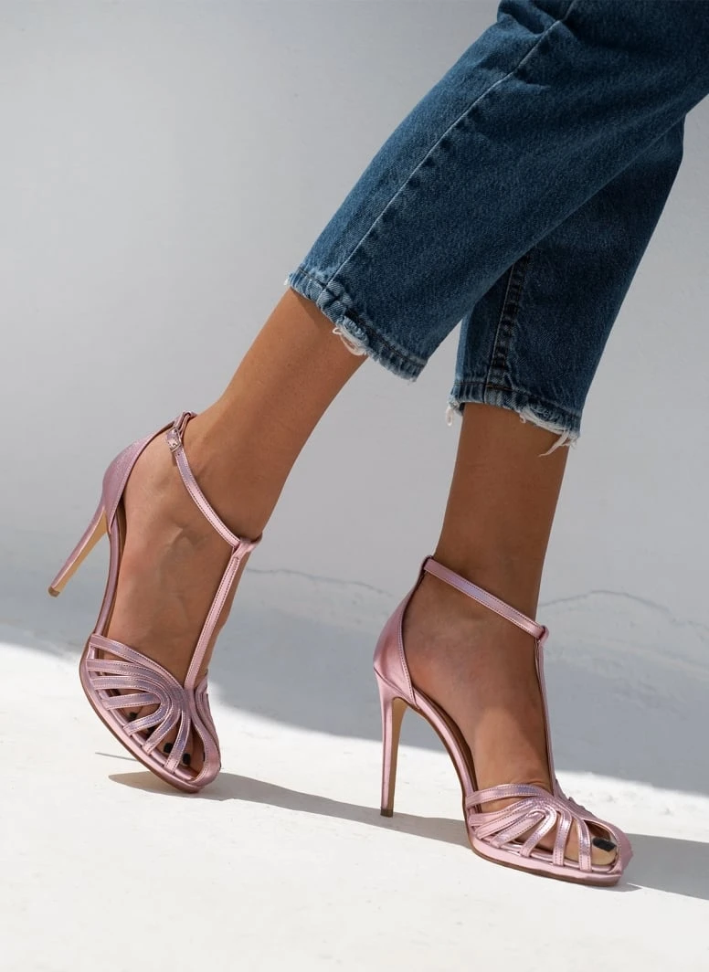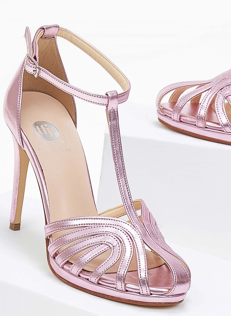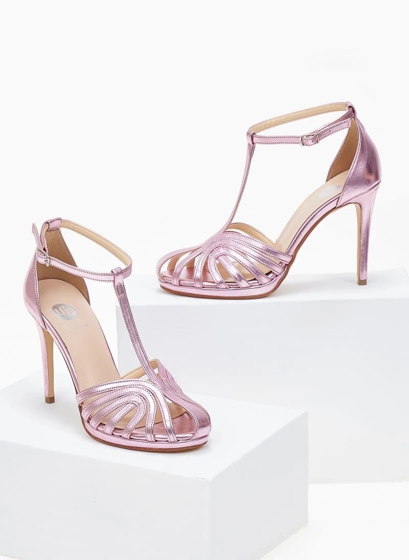 Πέδιλα με μπαρέτα ρετρό σε μεταλλικές αποχρώσεις Tfp – Ροζ