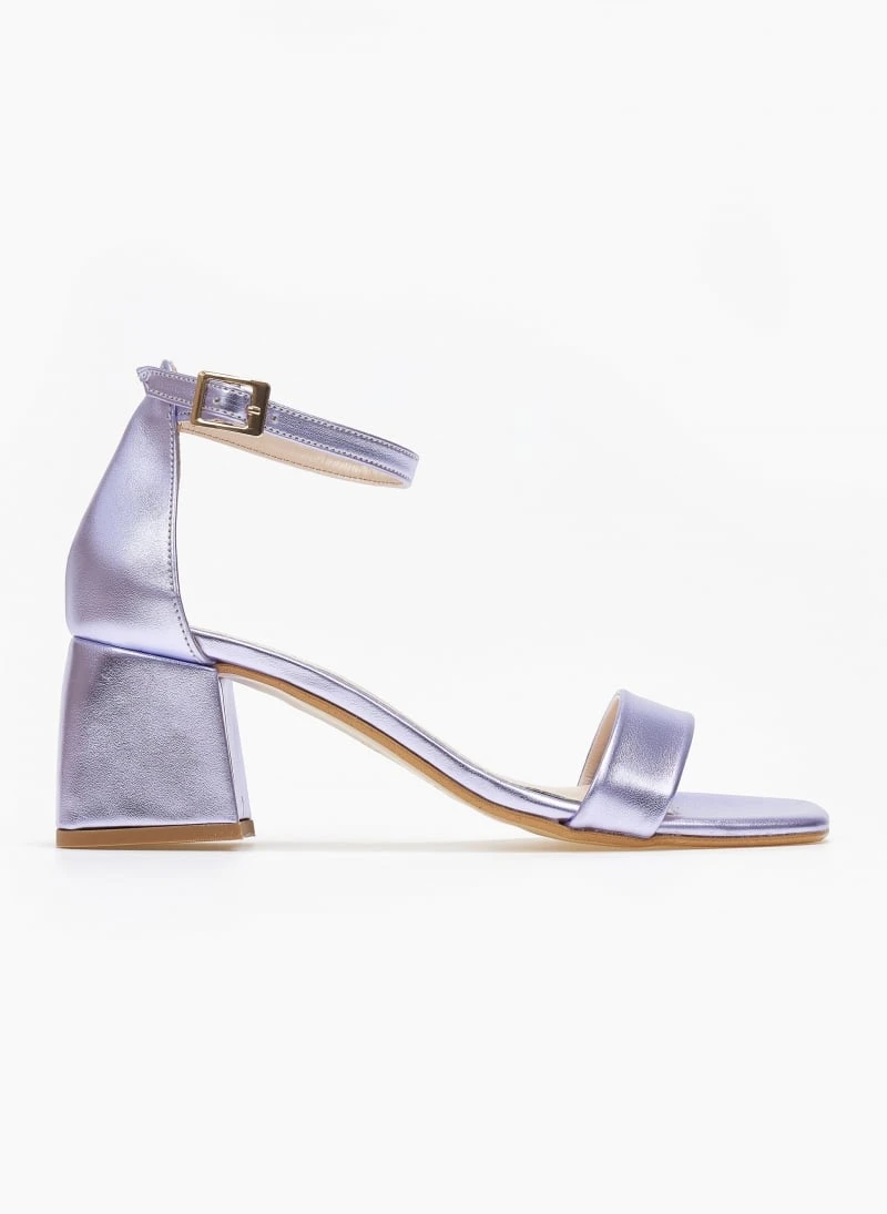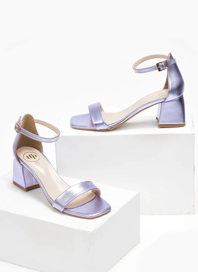 Πέδιλα σε μεταλλικά χρώματα tfp. Έχουν κλειστή φτέρνα. Δένουν με μπαρέτα στο ύψος του αστραγάλου. Καρέ γραμμή. Δερμάτινος πάτος. Ελληνικής κατασκευής.