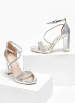 The Fashion Project Πέδιλα με στρας και μπαρέτα – Ασημί