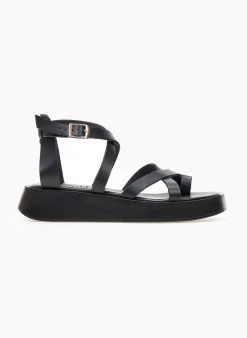 Σανδάλια δερμάτινα TFP με χιαστί δέσιμο – Μαύρο