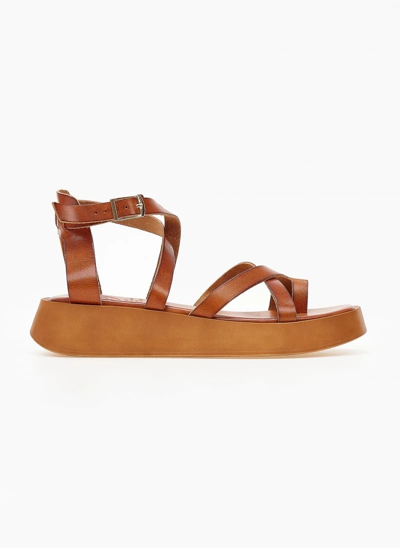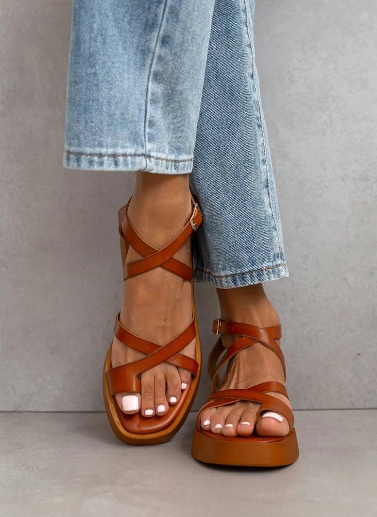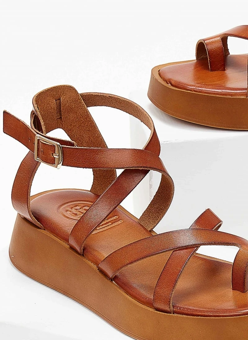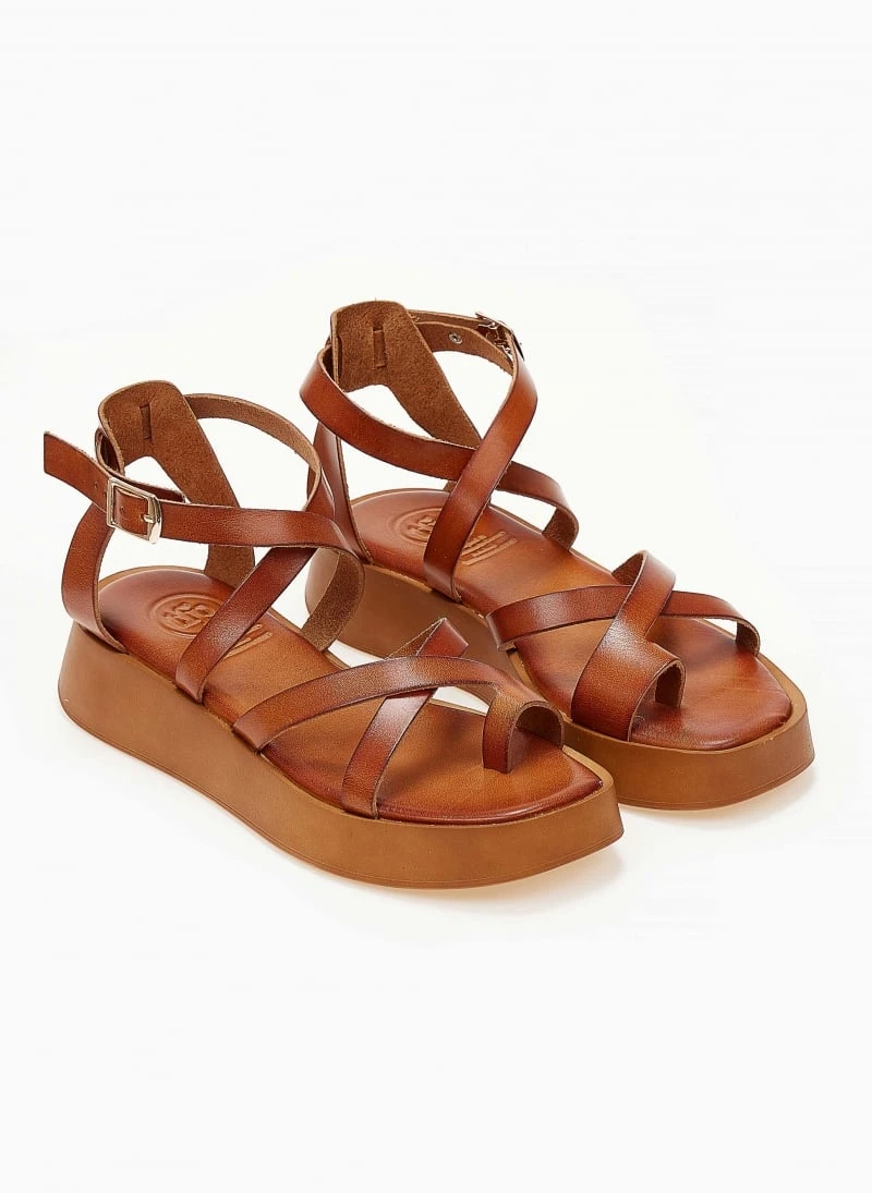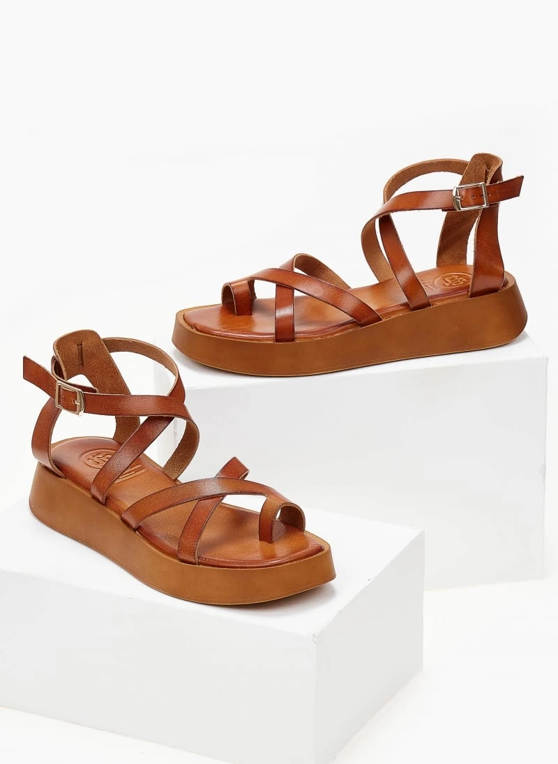 Σανδάλια δερμάτινα TFP με χιαστί δέσιμο – Ταμπά