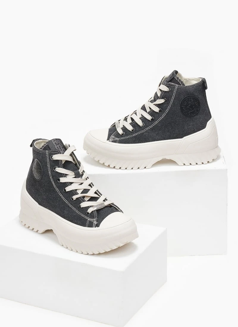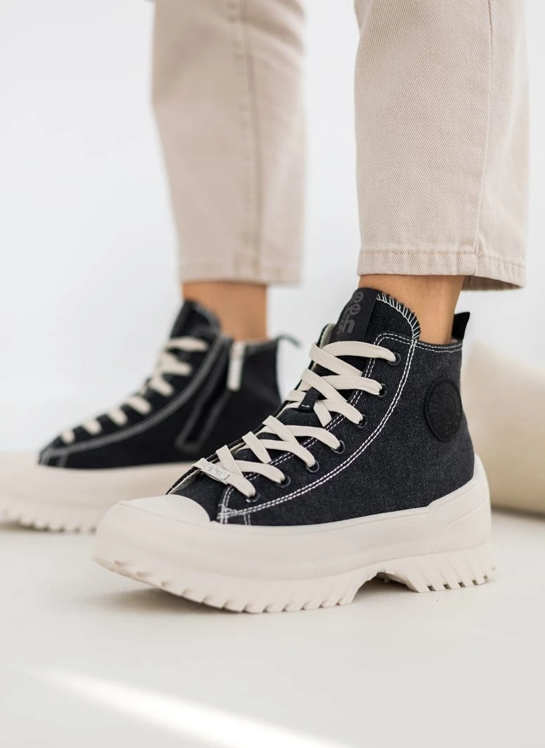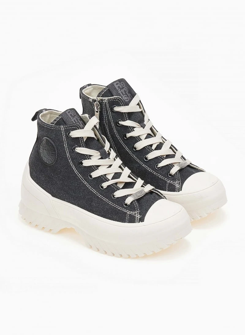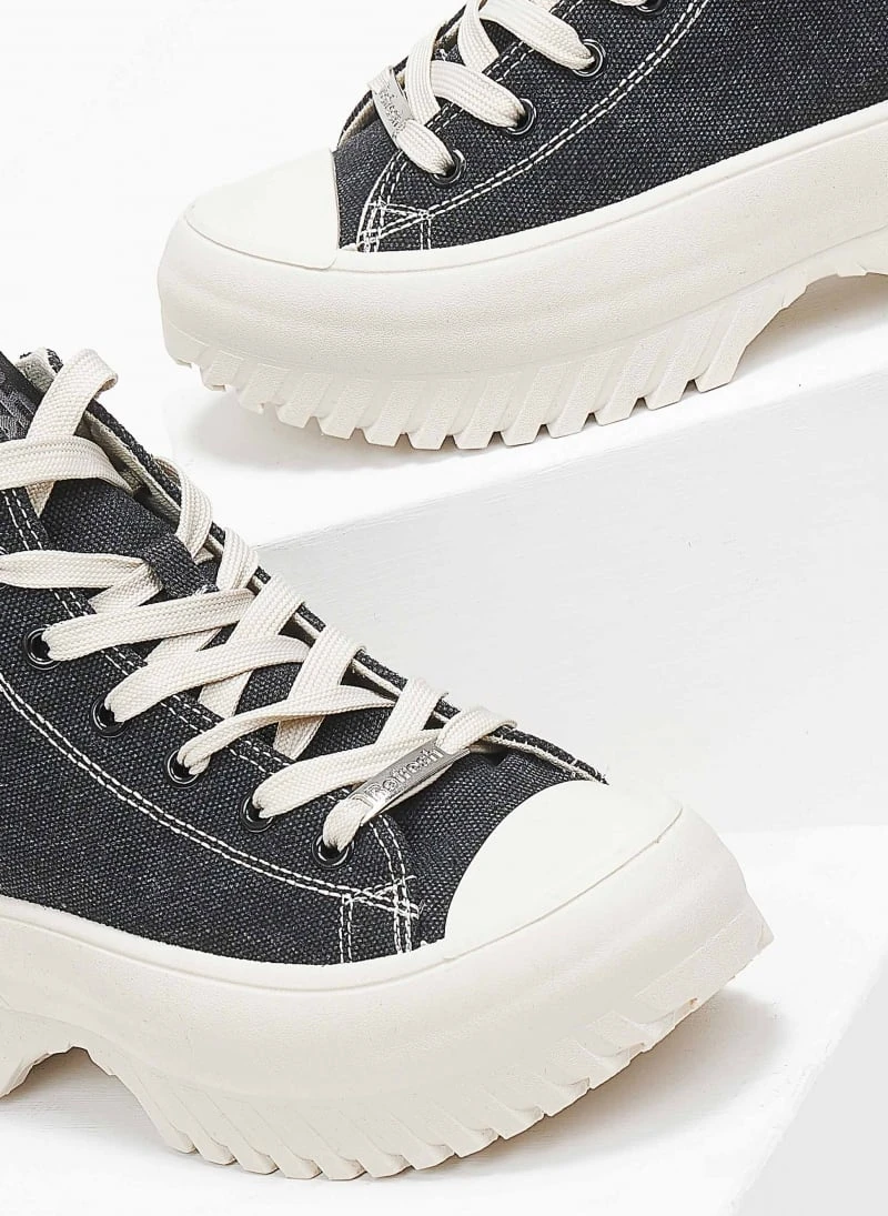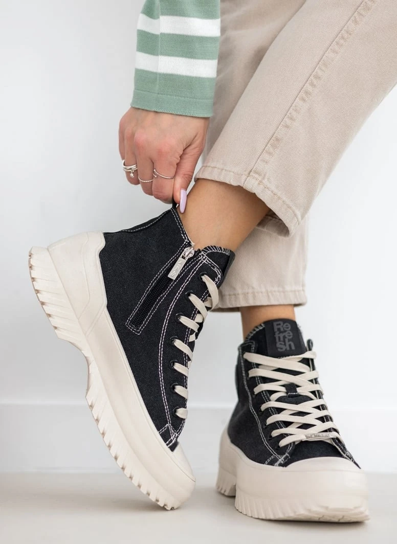 Sneakers μποτάκια πάνινα Refresh με ψηλή chunky σόλα. Διακριτικό λογότυπο στο πλάι. Έχουν φερμουάρ στην εσωτερική τους πλευρά. Μεταλλική λεπτομέρεια στα κορδόνια. Peta vegan approved.