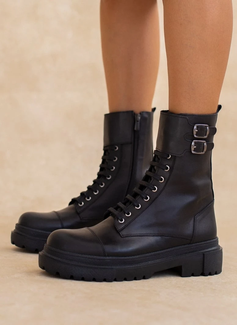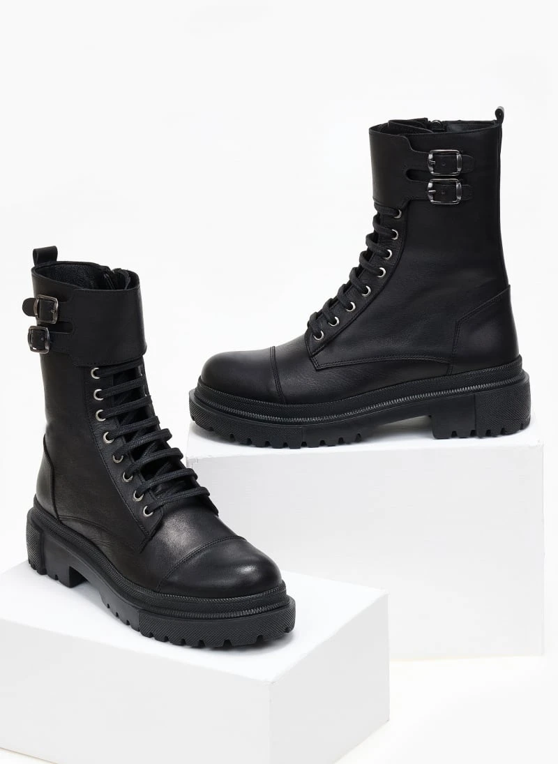 Αρβυλάκια δερμάτινα με ραφή στη μπροστινή πλευρά. Έχουν φαρδιά φάσα με διπλό ζωνάκι στο επάνω μέρος. Τρακτερωτή σόλα.