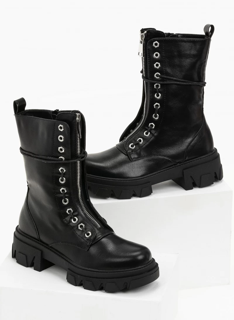 Αρβυλάκια με chunky σόλα και φερμουάρ στη μπροστινή πλευρά.Έχουν περαστά κορδόνια στο πλάι.
