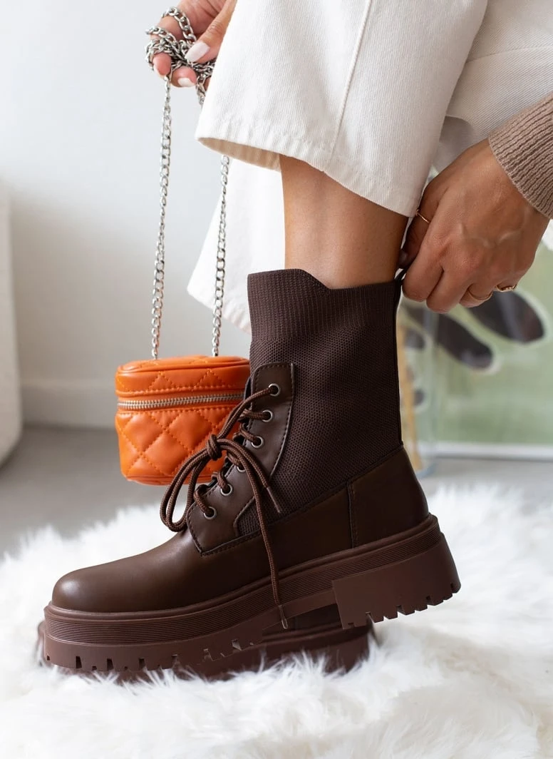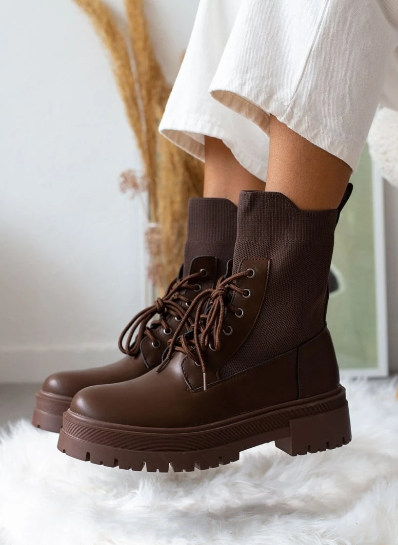 Αρβυλάκια με σχέδιο κάλτσα στη γάμπα.Έχουν ψηλή τρακτερωτή σόλα με σχέδιο. Λεπτομέρεια θηλάκι στο πίσω μέρος.