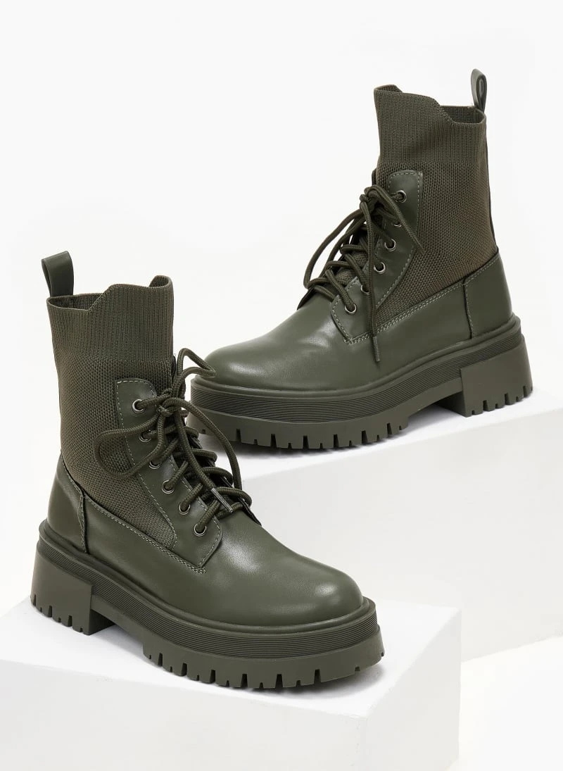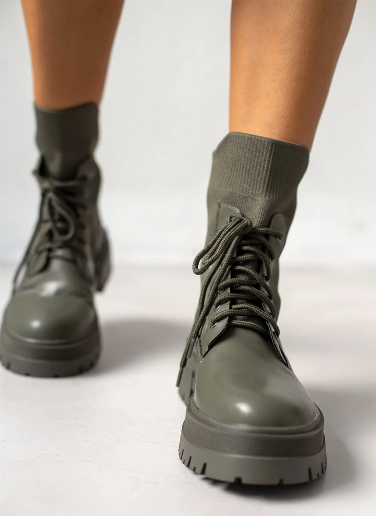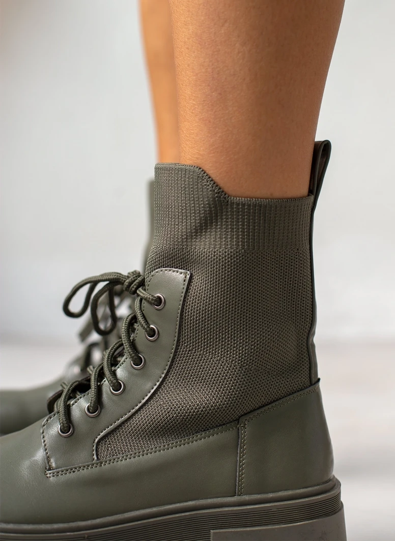 Αρβυλάκια με σχέδιο κάλτσα στη γάμπα.Έχουν ψηλή τρακτερωτή σόλα με σχέδιο. Λεπτομέρεια θηλάκι στο πίσω μέρος.