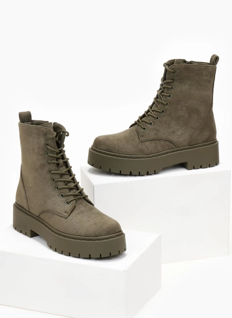 The Fashion Project Αρβυλάκια Suede με ραφή στη σόλα – Χακί