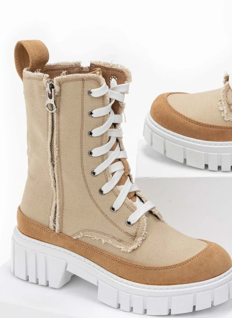 The Fashion Project Αρβυλάκια τζιν με ξέφτια στις ραφές – Μπεζ