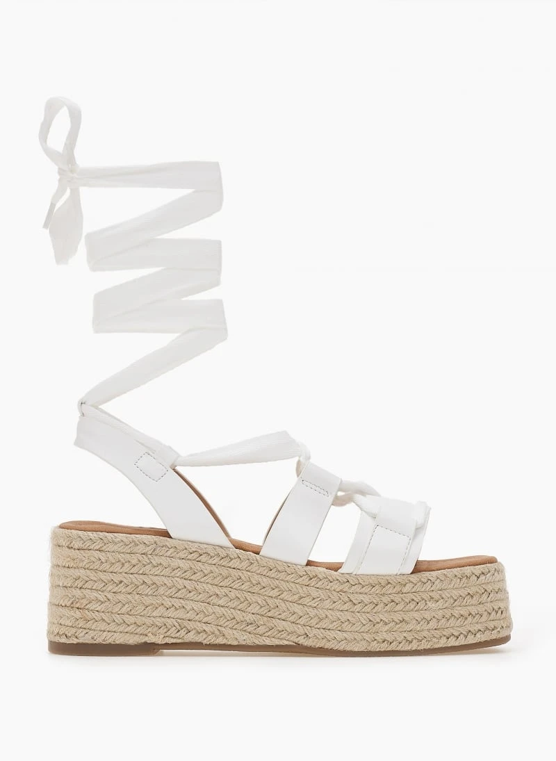 Flatforms με σχοίνινη σόλα. Δένουν με κορδόνια σττη γάμπα. Έχουν καρέ γραμμή.