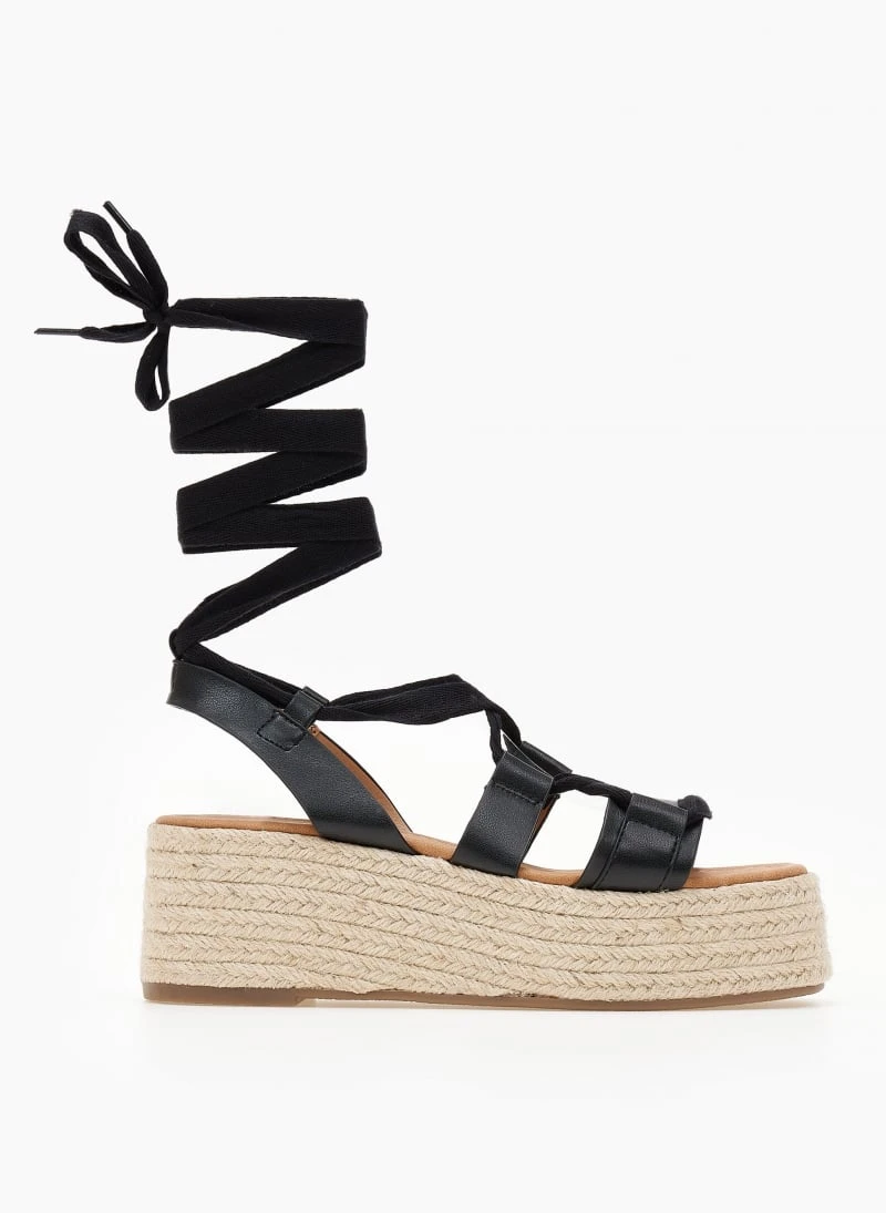 The Fashion Project Flatforms Lace Up με σχοίνινη σόλα – Μαύρο