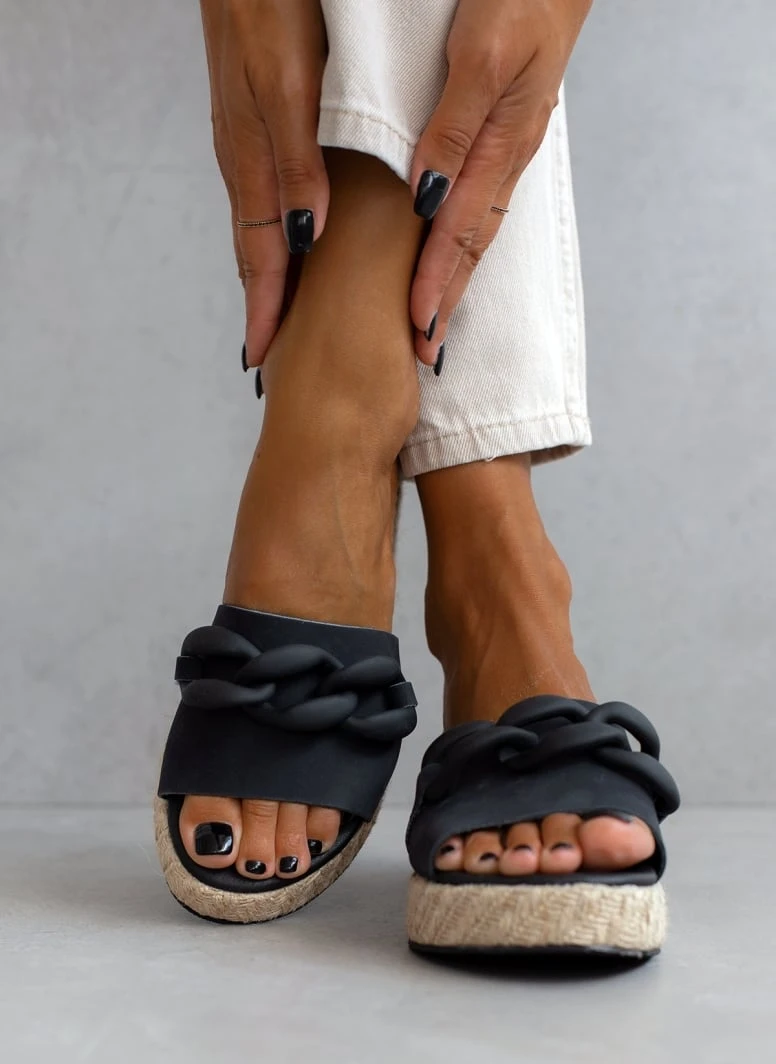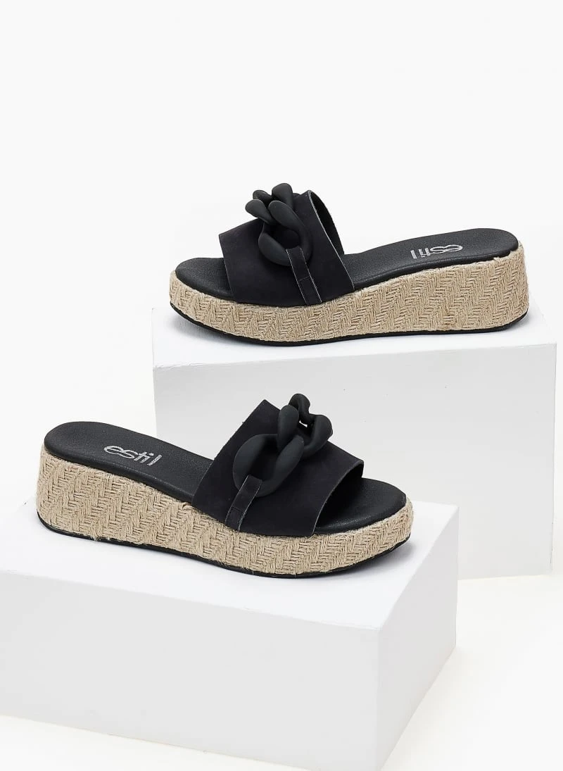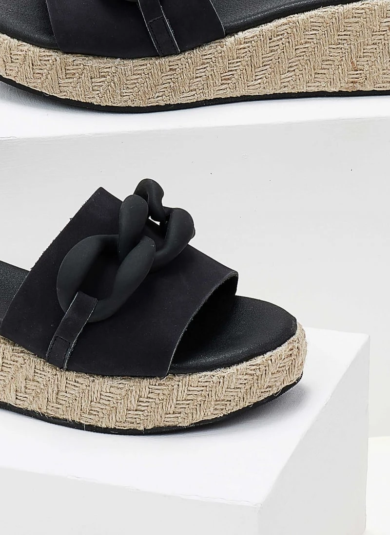 The Fashion Project Flatforms Nubuck με αλυσίδα – Μαύρο