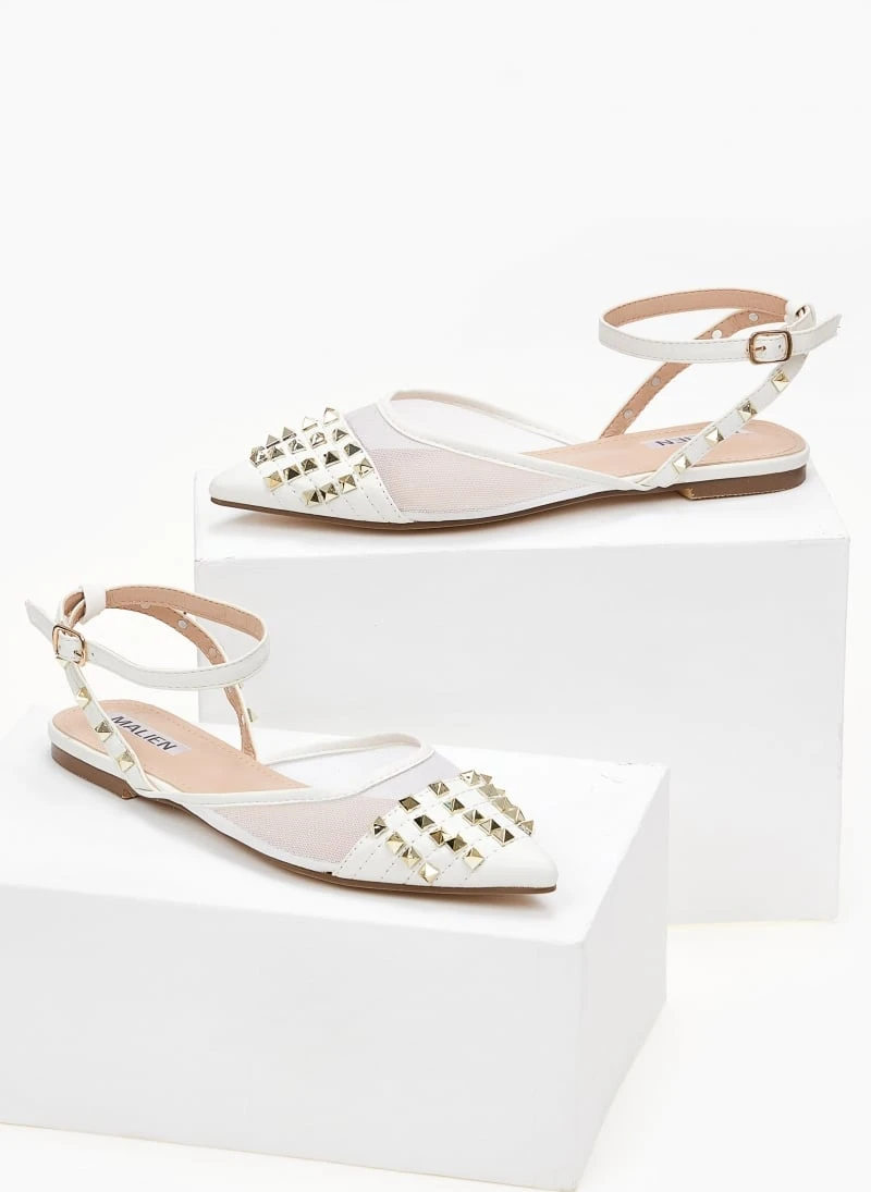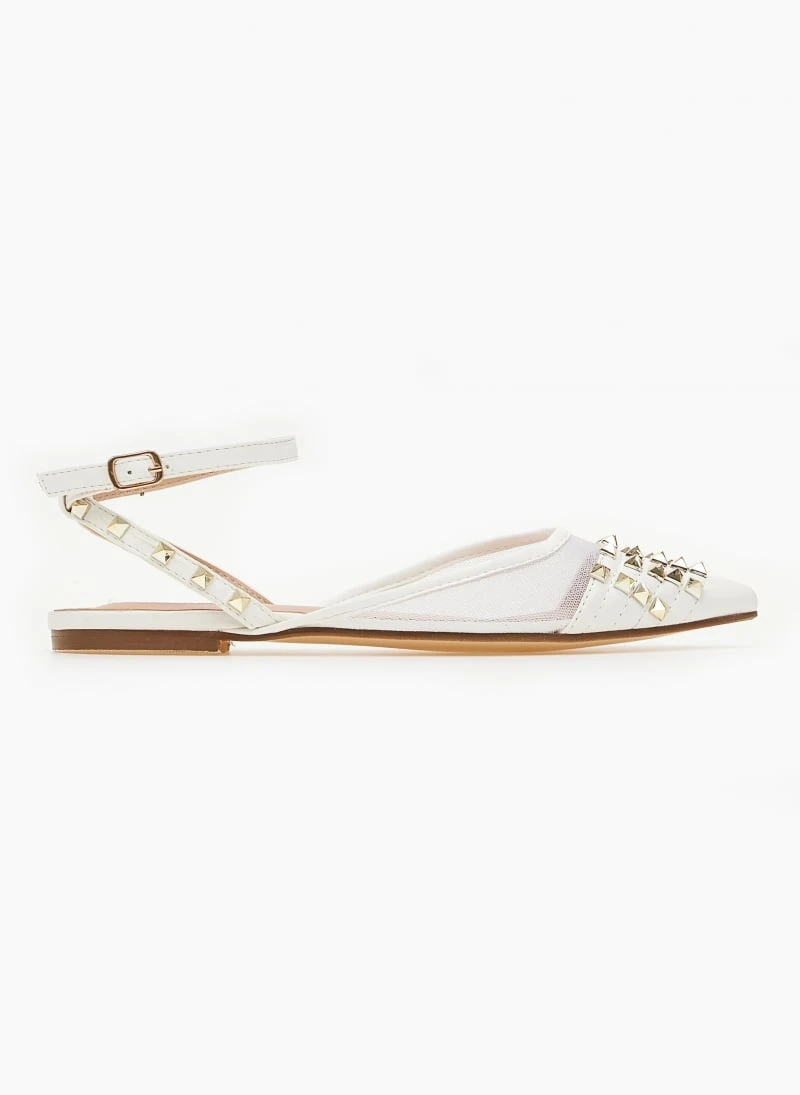 The Fashion Project Μπαλαρίνες ίσιες με διαφάνεια και τρουκς – Λευκό