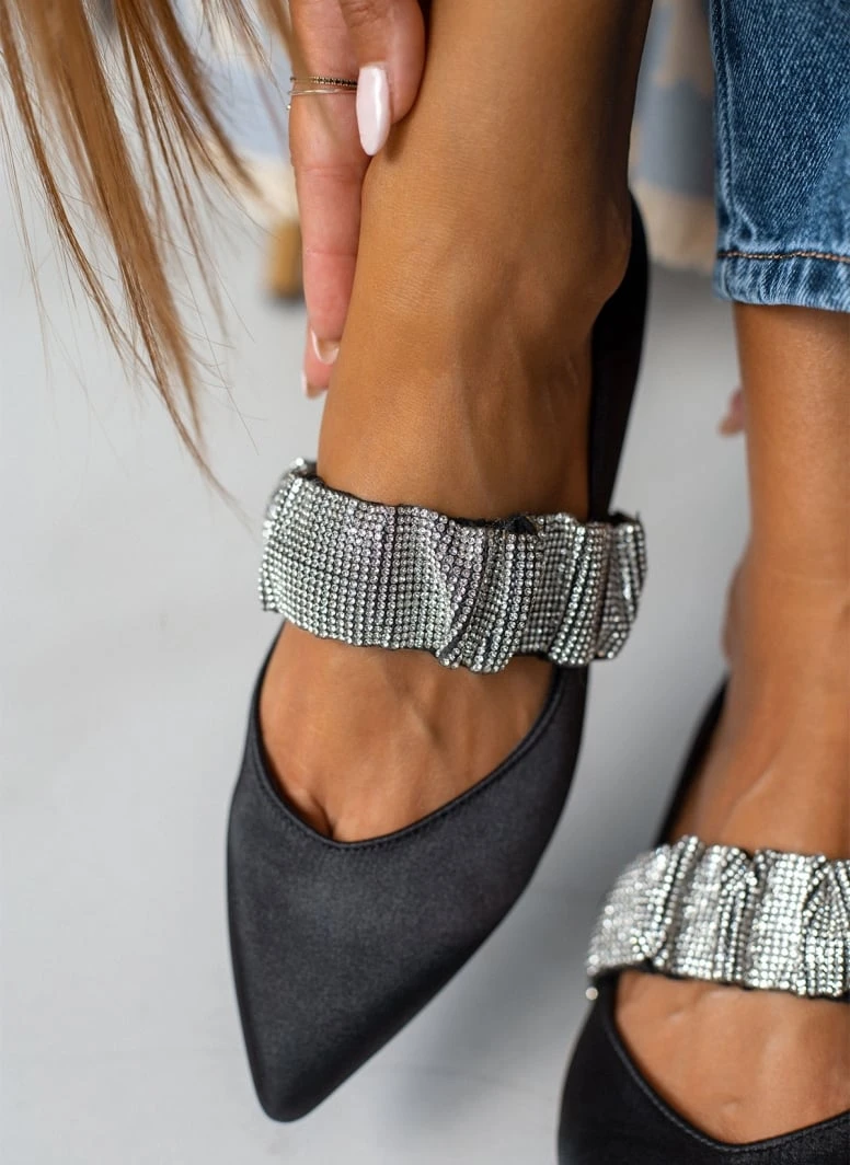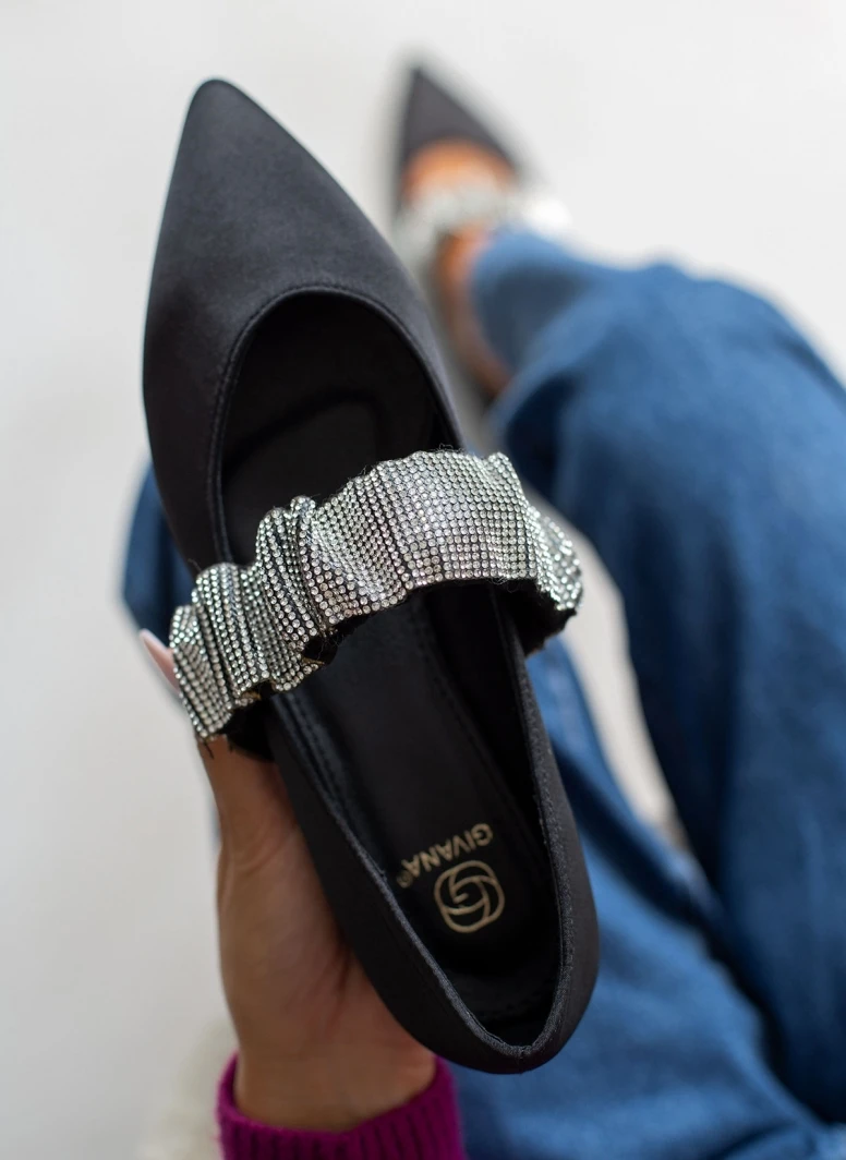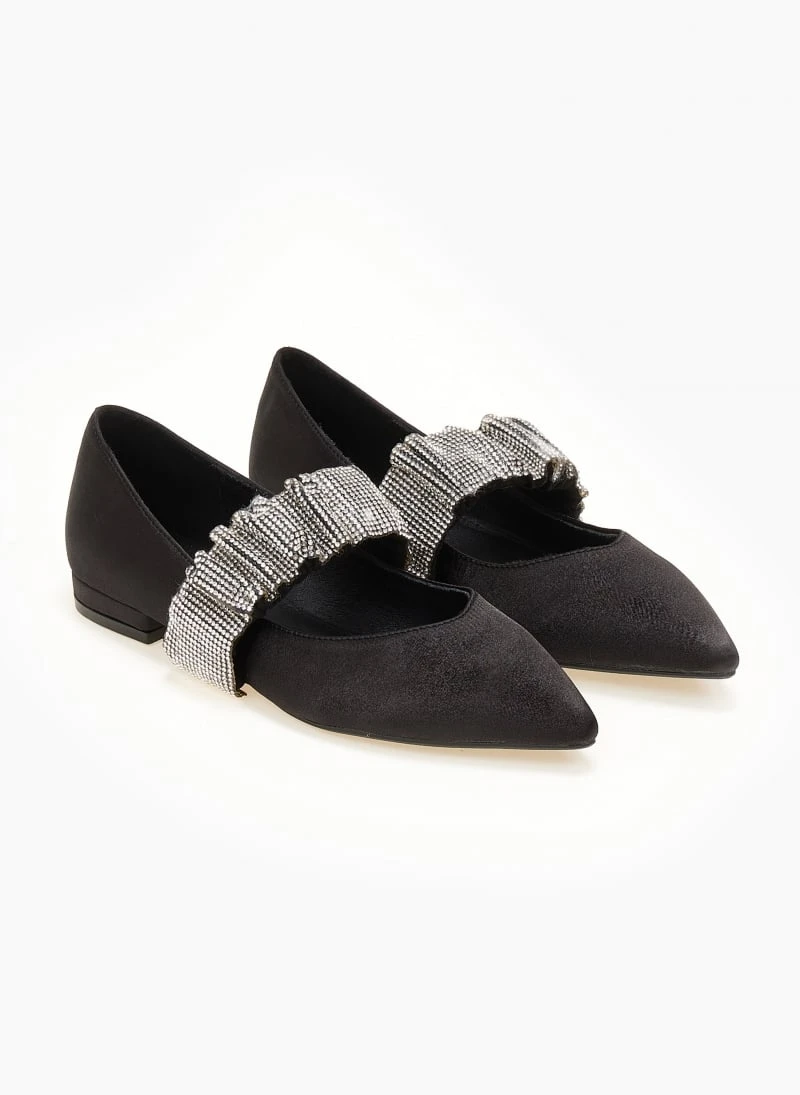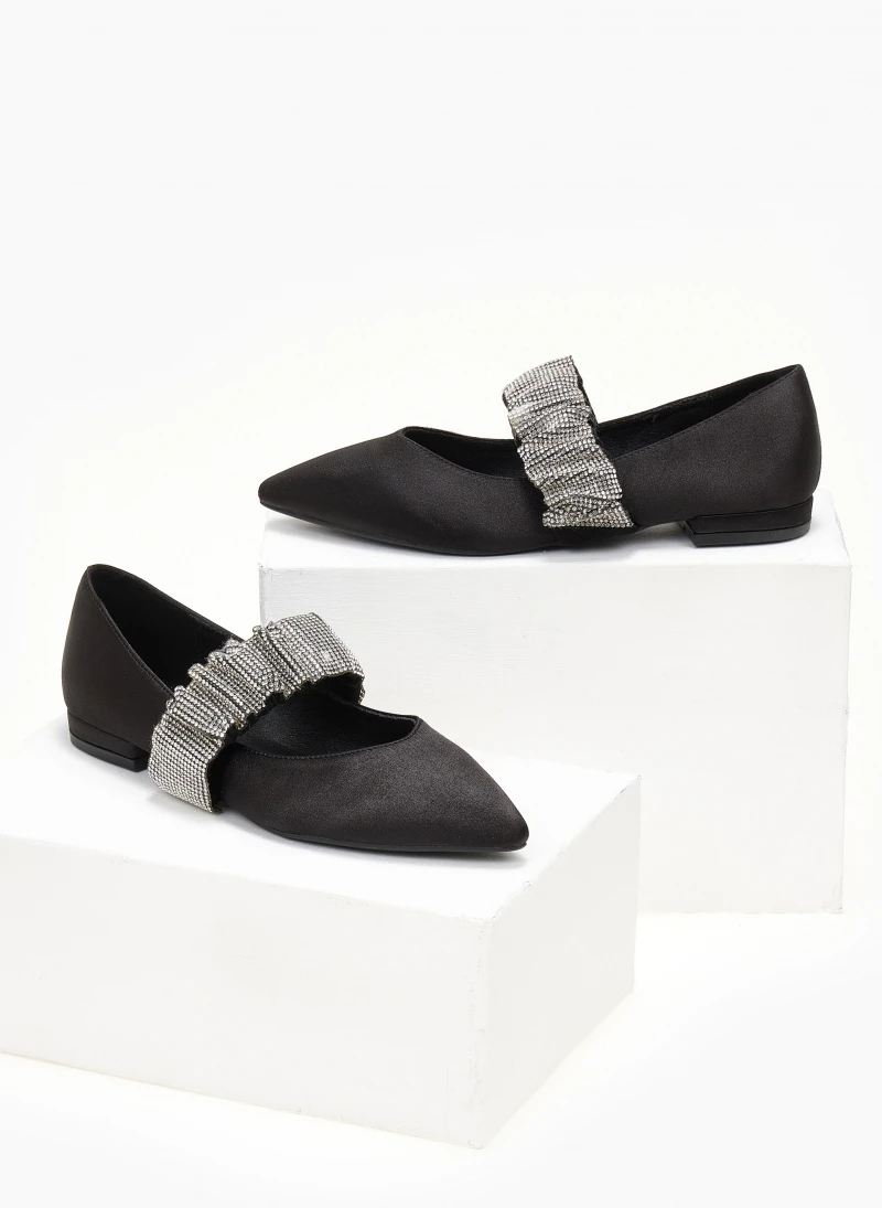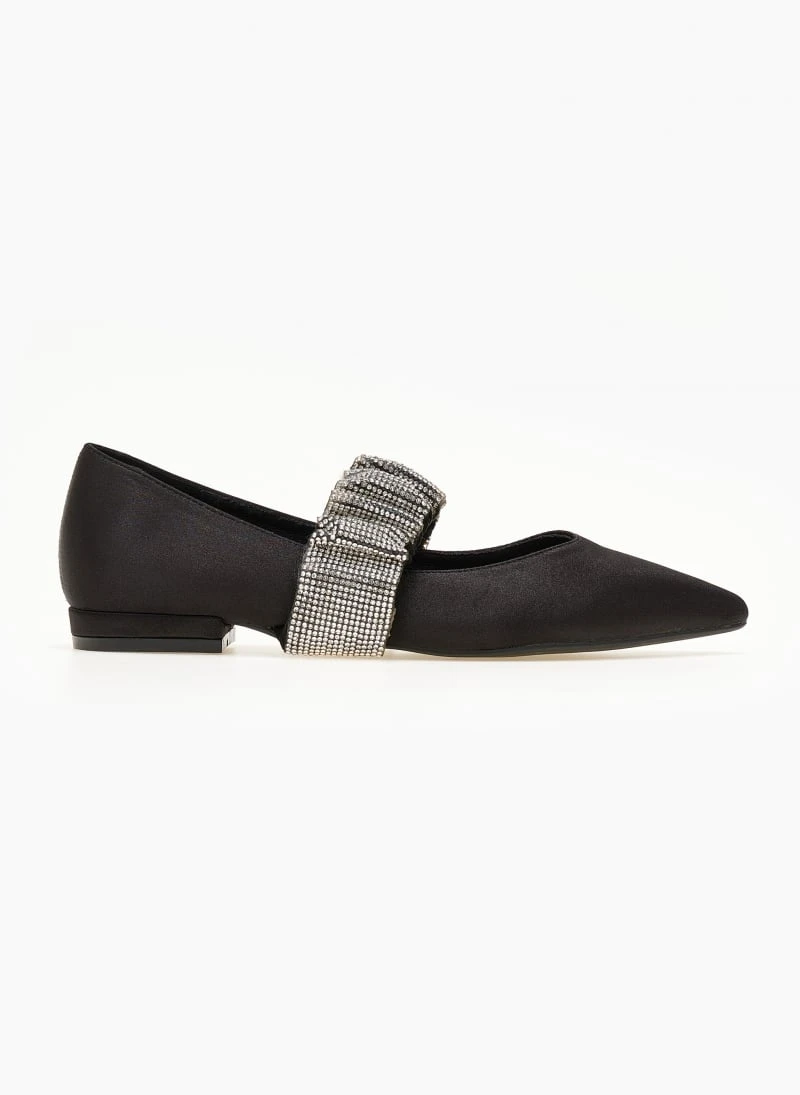 The Fashion Project Μπαλαρίνες σατέν με Strass φάσα – Μαύρο