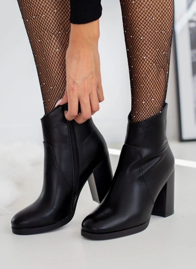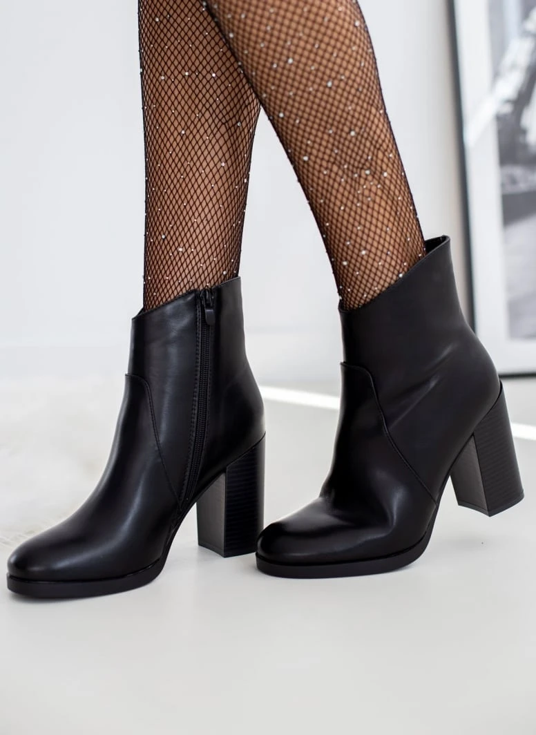 Μποτάκια αστραγάλου με ασύμμετρο τελείωμα. Στρογγυλή γραμμή. Χοντρό τακούνι.